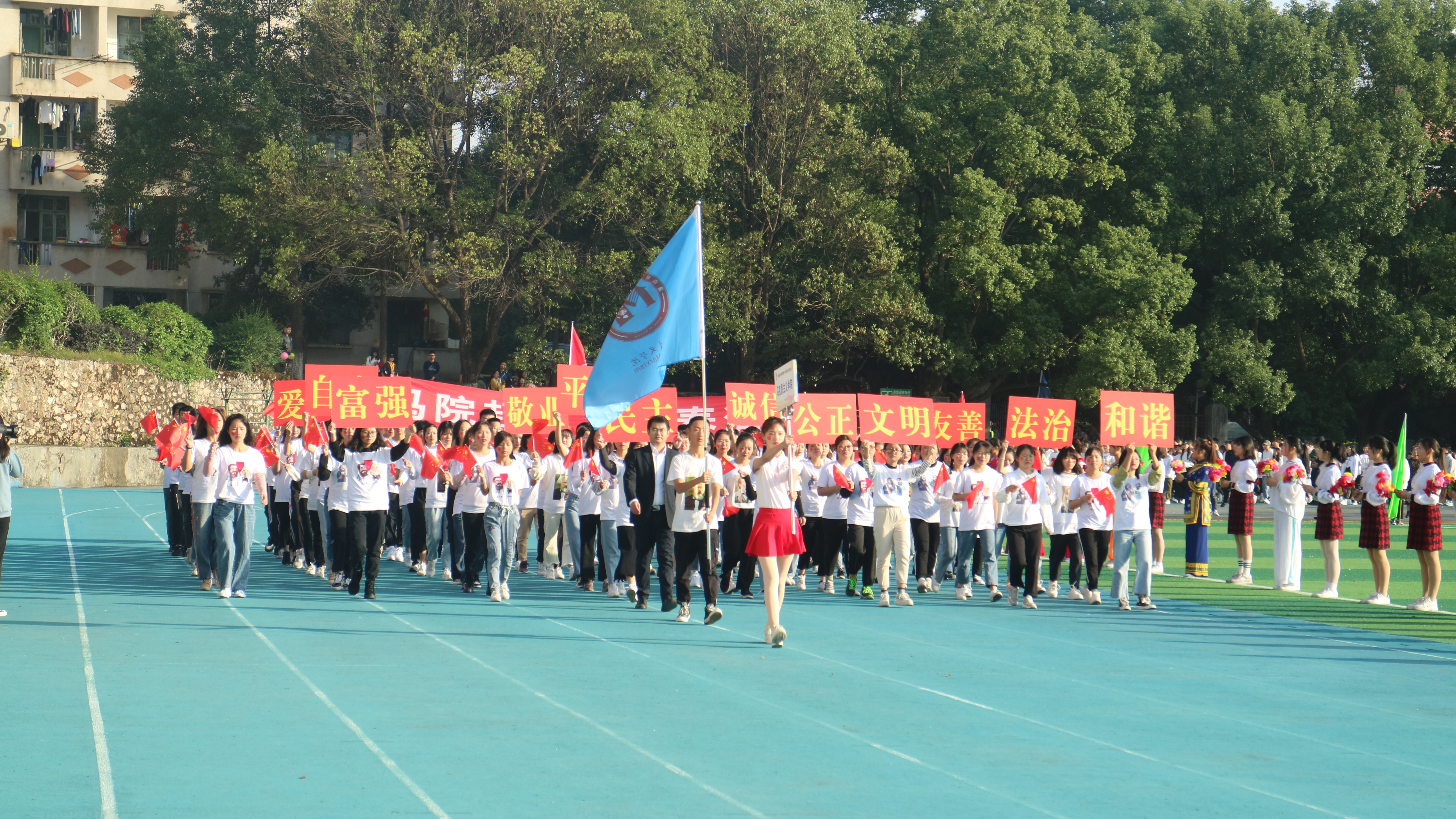 开幕式上,我院以百人方阵形式入场,同学们统一身着院服,迈着整齐的步伐,高喊“马院启航,青春激扬”嘹亮口号,标准的动作、飒爽的英姿展现了我院学子良好的精神面貌。