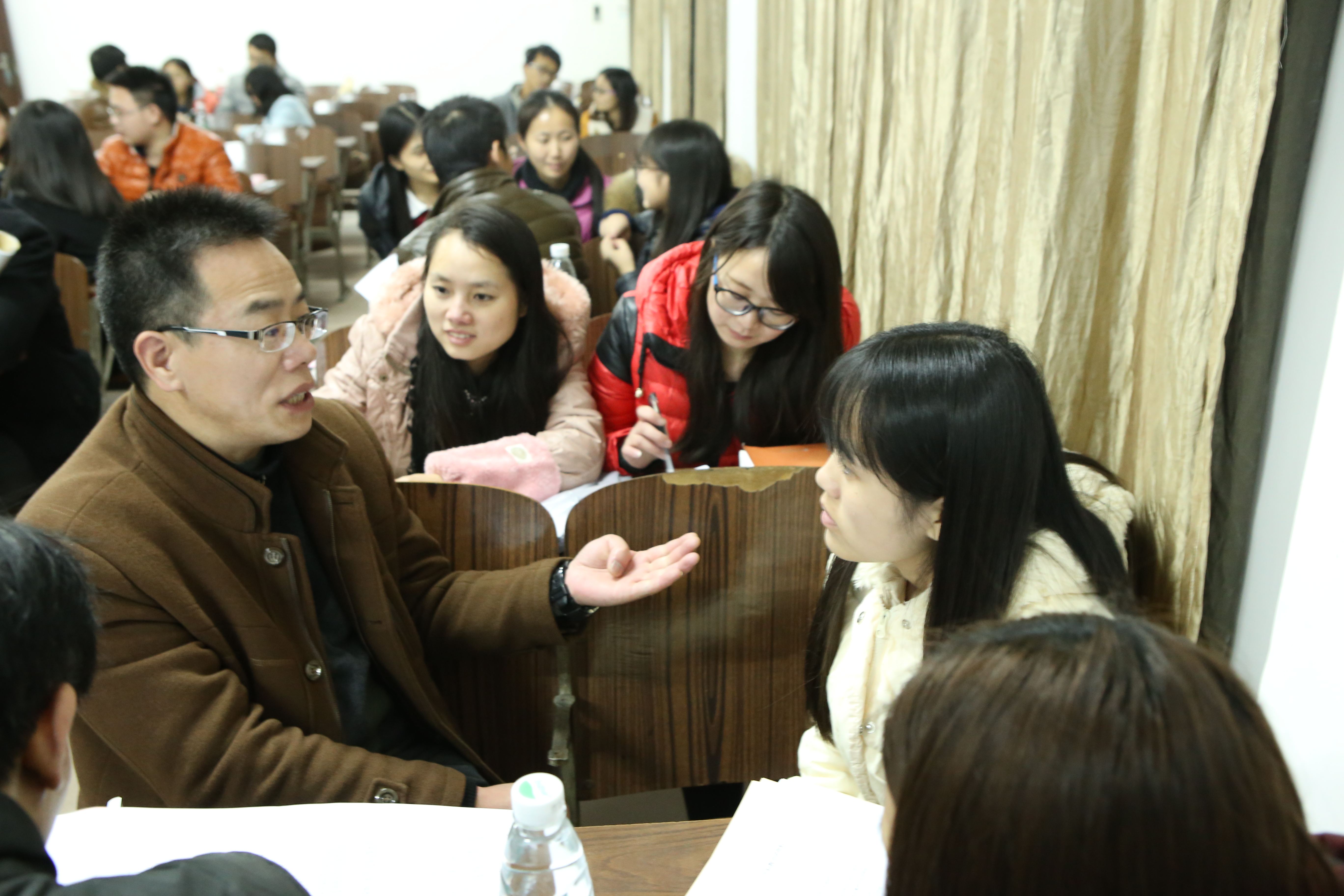 “老师,我们马上就要进入社会这个大熔炉,应该怎么办呢?”廖雅琴院长说:“你们要正确认识自己,主动适应社会,可以先就业再择业,在就业的过程中重新定位。”“老师,我想当教师,可我觉得自己不能胜任怎么办?”李小红耐心为同学们传授讲课经验,她说:“一个人的眼界不能过于狭隘,要把自己的眼界放宽。要多学习各方面知识,不要求样样精通,但一定要都会。”在一个多小时的讨论中,帮扶老师分别从考研、公务员、教师、创业等方面悉心了解学生们的情况,在就业创业的道路上甘做一盏明灯。