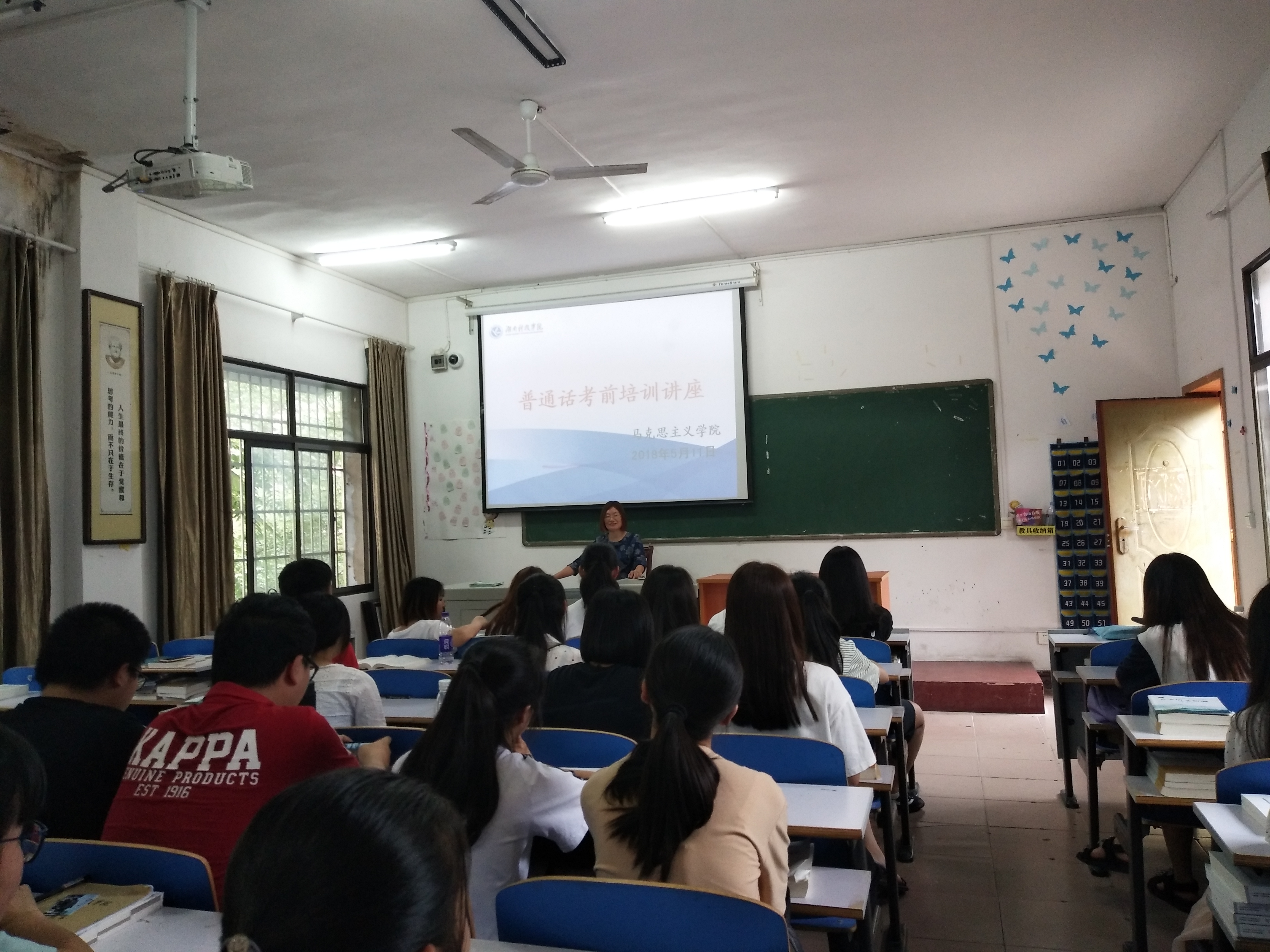 5月11日下午,我院在鹤鸣楼501教室开展普通话水平测试考前培训讲座。本次讲座邀请普通话水平测试员宋淑媛老师主讲,我院17级学生听取了讲座。