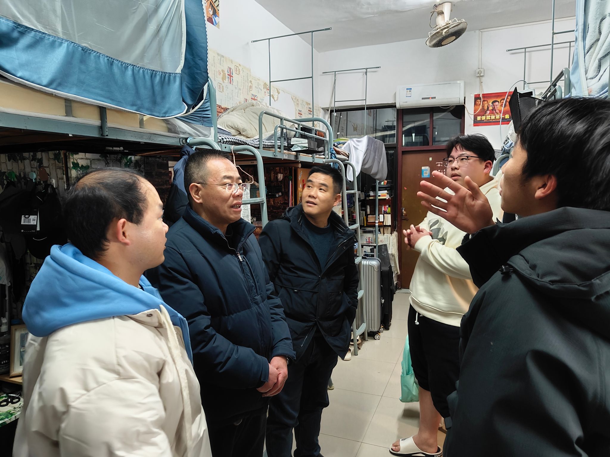 为进一步了解学生的假期状态,全体院领导率辅导员、班主任下寝关怀学生。下寝过程中,同学们欢快地同老师们分享了各自的假期生活、学习、社会实践趣事,老师们暖心叮嘱同学们注意防寒保暖,注意防传染疾病防电诈,注意宿舍用电安全;并提出同学们要积极调整状态,以饱满的精神开启新学期。