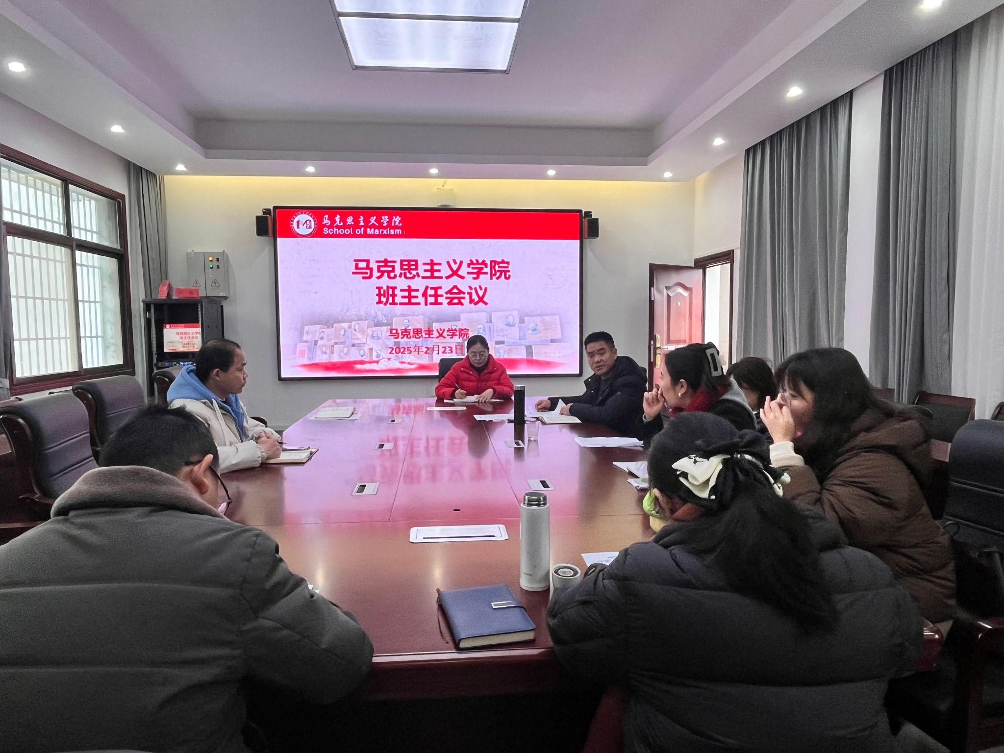 本网讯(记者 曹惠如)2月23日,为确保新学期开学工作稳健、有序、高效推进,我院于鹤鸣楼405召开新学期班主任工作会议。党总支书记陈玉皎、副书记高丹、全体辅导员、班主任出席会议。