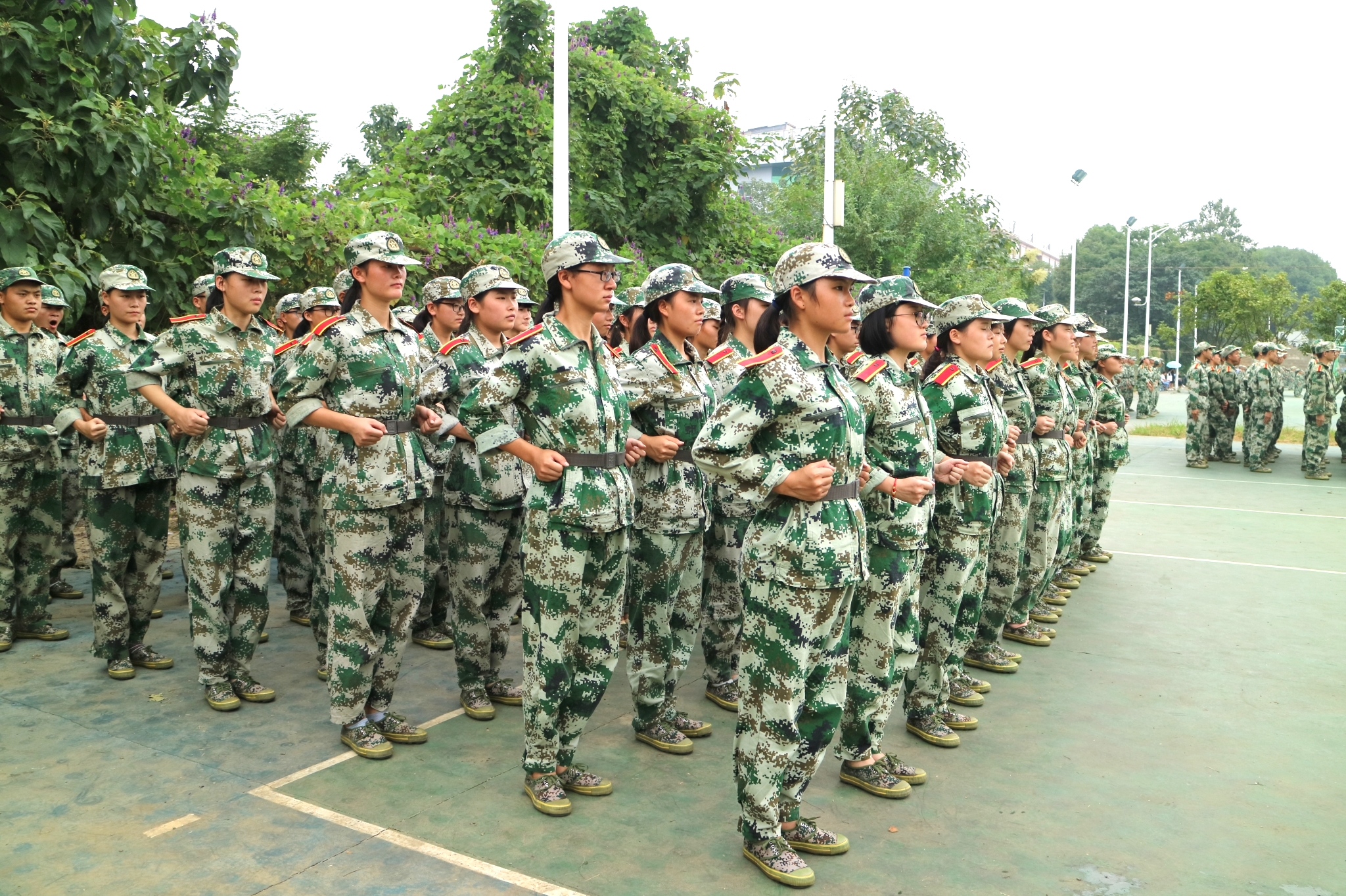 军训开始后便持续高温,新生们相互鼓励和帮助,坚持在训练场上站好每一分钟;21日上午,天空中飘着微风,紧接着雨滴打在了新生们的脸庞上,高温骤降,热情不减,新生们依然岿然不动地站在训练场上,体现了军人一般不倒的意志和精神。在部队教官亲切的关怀和严格训练下,在短短的五天里,齐步走、正步走、齐步变正步、解散、集合及分列式等预定训练科目已初见成效。教官手把手教,学生认真的学,方队整齐,精神饱满,步伐矫健、口令准确、声音嘹亮。相信经过了军训的磨练,同学们会有很大的收获,并逐渐成长为一名合格的当代大学生。挥别过去,开始新的征程。站在一个更高的起点,他们翘首以待,整装待发。