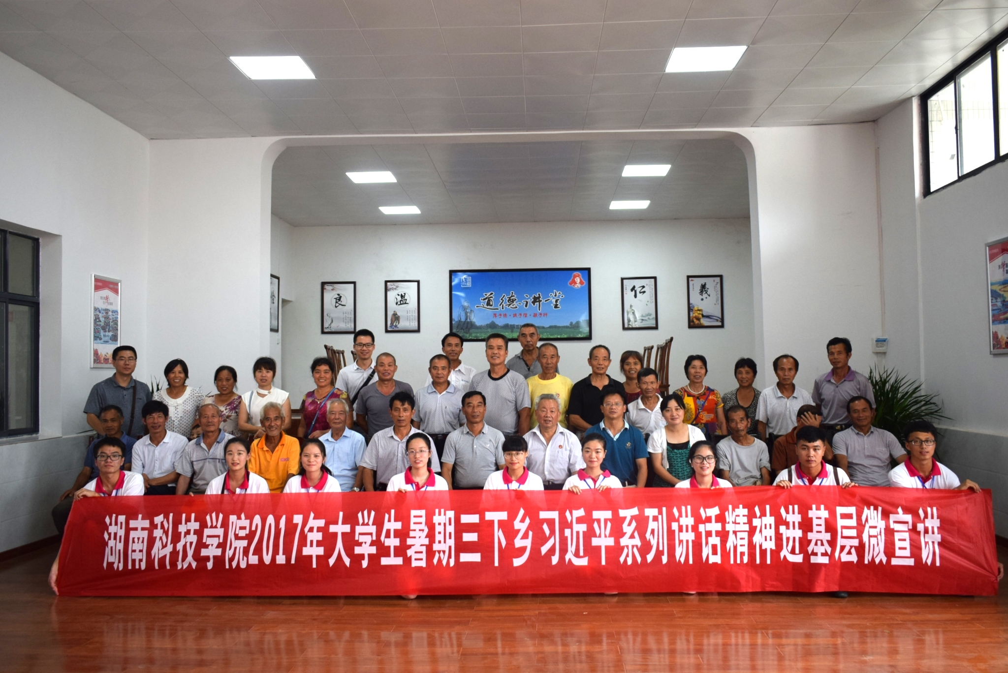 本网讯(记者 贺茶湘)7月11日,马克思主义学院大学生暑期“三下乡” 社会实践团队一行14人在党总支书记唐森树的带领下在祁阳县白水镇开展习总书记系列讲话精神进基层微宣讲,继续进行三下乡第二天的活动。