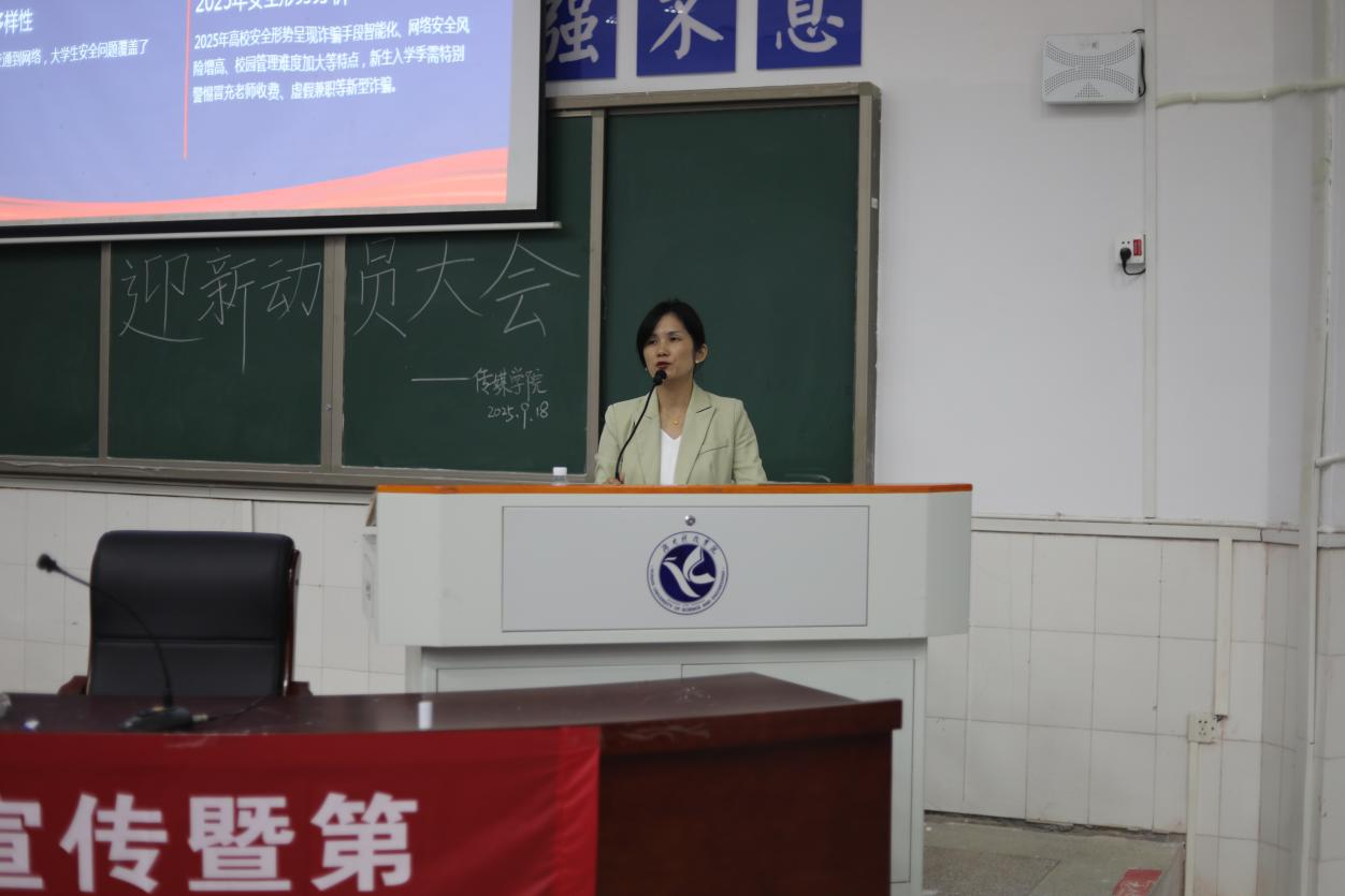 本网讯(记者 李嘉瑶)为助力新生更好适应大学生活,增强安全意识与健康素养。9月22日,马克思主义学院联合旅游与文化产业学院在日新楼202共同开展健康与安全教育主题讲座,本次讲座由科技处社会科学管理科科长胡晓老师主讲,2025级全体同学参加。