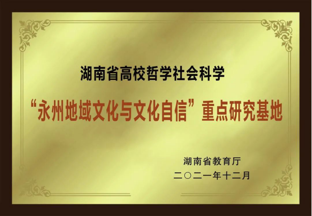 湖南省高校哲学社会科学“永州地域文化与文化自信”重点研究基地