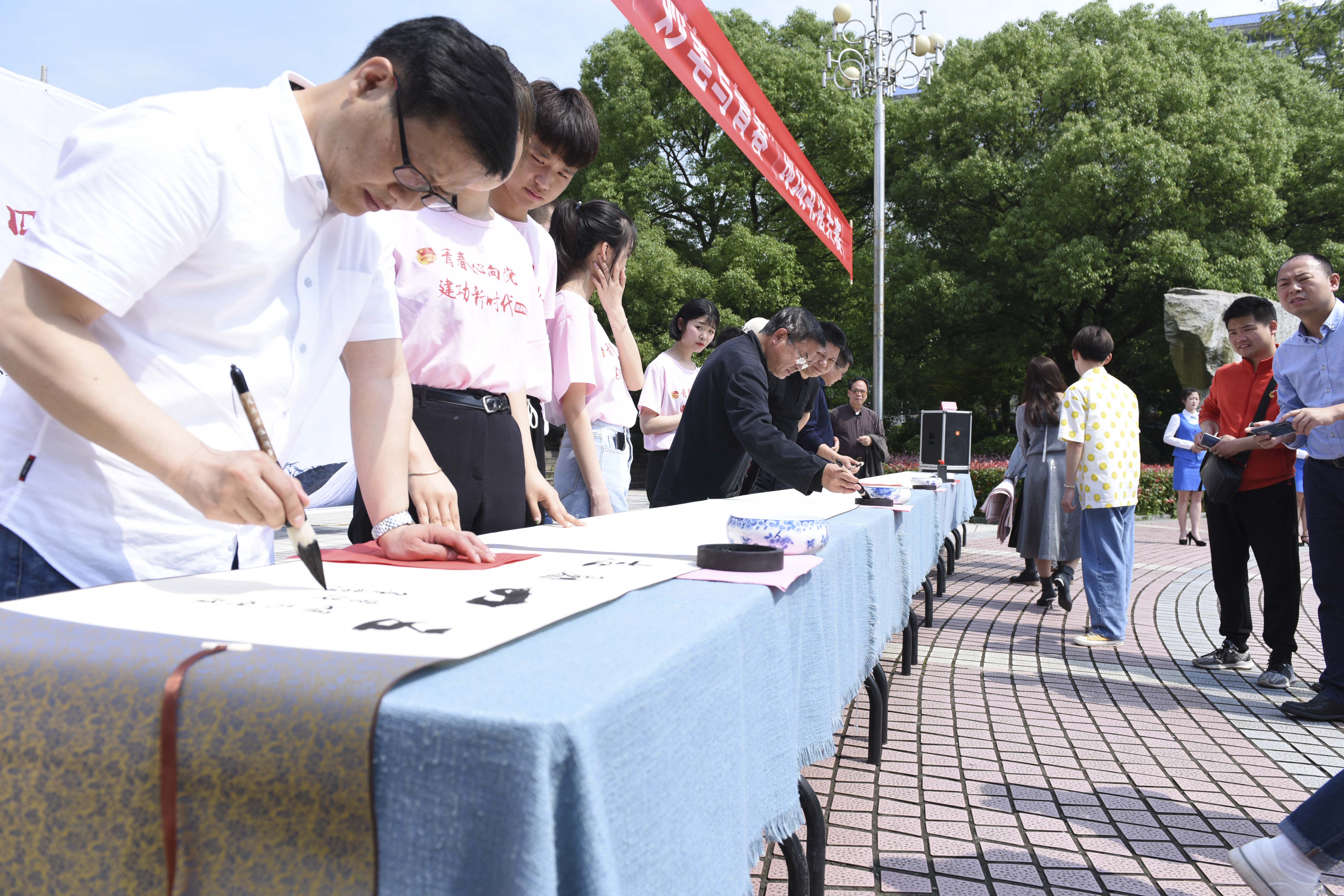 本网讯(通讯员:谢玖兰 韩嘉雯)2019年5月11日上午,为纪念五四运动100周年,深入学习宣传贯彻习近平新时代中国特色社会主义思想,弘扬和传承“爱国、进步、民主、科学”五四精神。星空app官网于校文化广场举行以“墨香传五四,妙笔写青春”为主题的现场书法大赛活动。副校长程智开、中国书法协会会员刘建平、永州市书法家协会第一届主席黎笃田、永州市书法家协会副主席宋运清、校书法协会会长唐幼铎等省内知名书法大伽莅临大赛现场。本次大赛由共青团星空app官网委员会主办,美术与艺术设计学院承办。