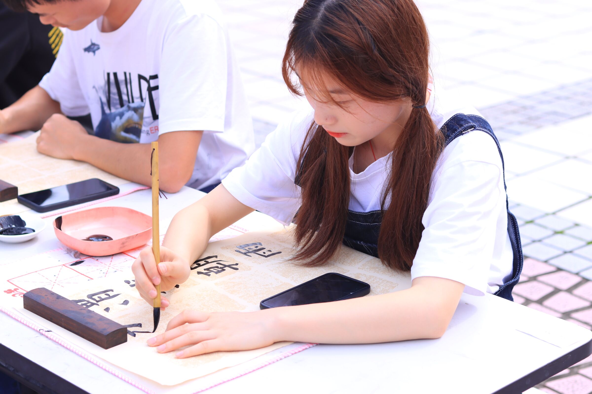 大赛共分三类作品,分别是现场书法、现场绘画以及电子设计类作品。比赛过程中,选手们紧扣比赛主题,或凝神思考、或挥毫泼墨,尽情投入,一幅幅书法作品相继完成,瘦劲挺拔的篆书、端庄典雅的隶书、矫若惊龙的草书、灵活飘逸的行书、刚正遒劲的楷书纷纷呈现,水墨、水彩、版画、素描、剪纸、拼贴等各类美术作品争相涌现,或呈现祖国大好河山,或展现中国共产党的光辉历程,或是对祖国未来的美好祝福。