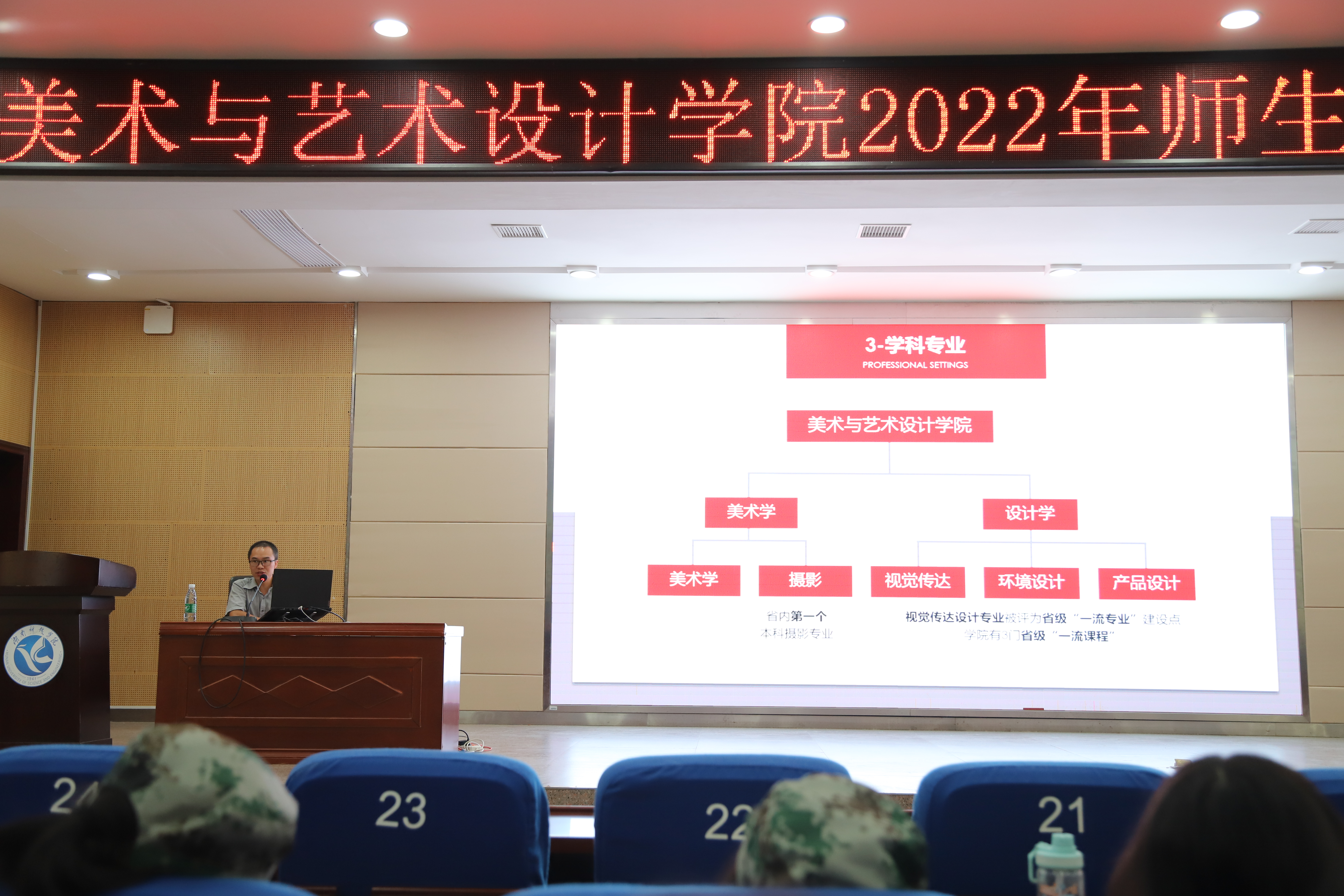 本网讯(通讯员:卿可青)9月23日晚上19点,星空app官网美术与艺术设计学院在潇湘大讲堂举行2022级师生见面会暨入学教育。出席本次见面会的有院长张建利、副院长刘华、副院长柏小剑、各系系主任、各年级辅导员、2022级全体班主任。参加本次见面会的有2022级全体学生和美院团委学生会成员,本次会议由副书记林乔军主持。