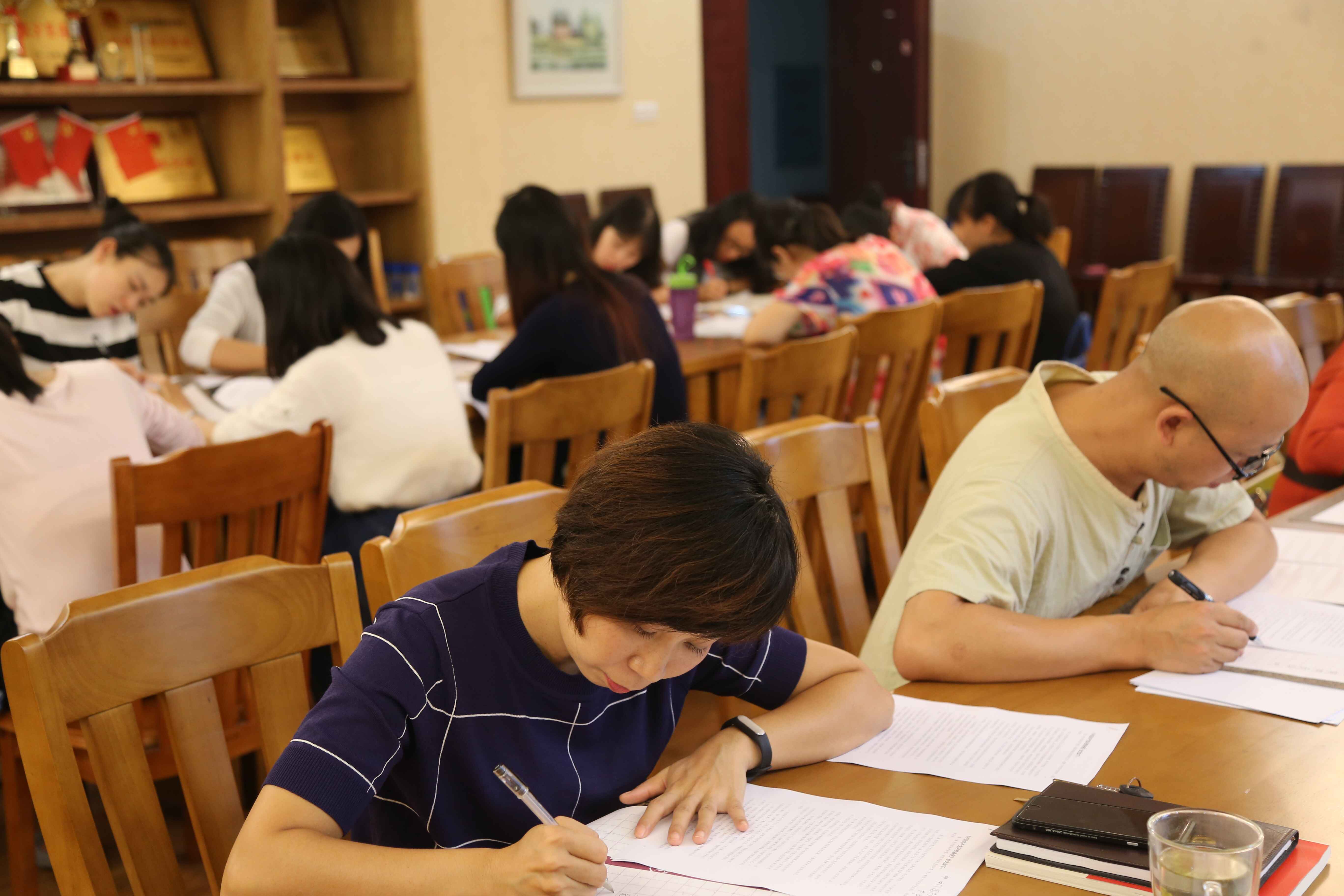 在比赛现场,教师党员们全力投入,精心书写,在小小的方格之间挥洒书写之豪气,将《中国共产党问责条例》演绎出不同的精彩版本。