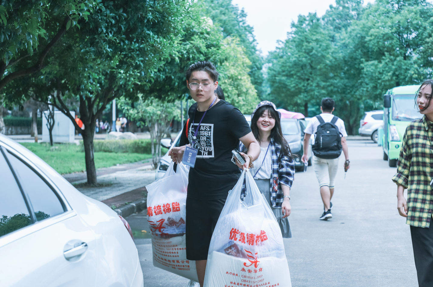迎新工作如火如荼志愿者们穿梭在学校的各个角落,学生服务中心、新生接待点、新生用品领取处、学生宿舍等地都是他们忙碌的身影美术楼前,几个男生正在悬挂横幅,站在梯子上的男生已经连续两年参与迎新工作,他们用饱满的热情和亲切的笑容,让每一位报到的学生和家长倍感温暖和安心。