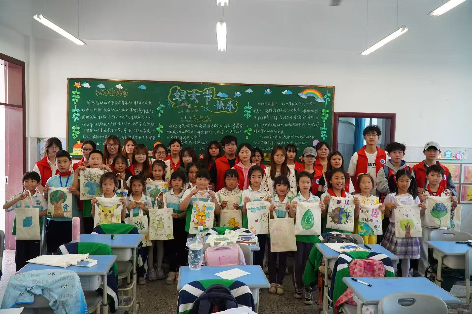 本网讯(通讯员罗佳佳 万涛)4月29日,美术与艺术设计学院青年志愿服务团21名学生志愿者在零陵区杨梓塘小学开展“点亮地球,‘袋’来绿意”环保主题活动。