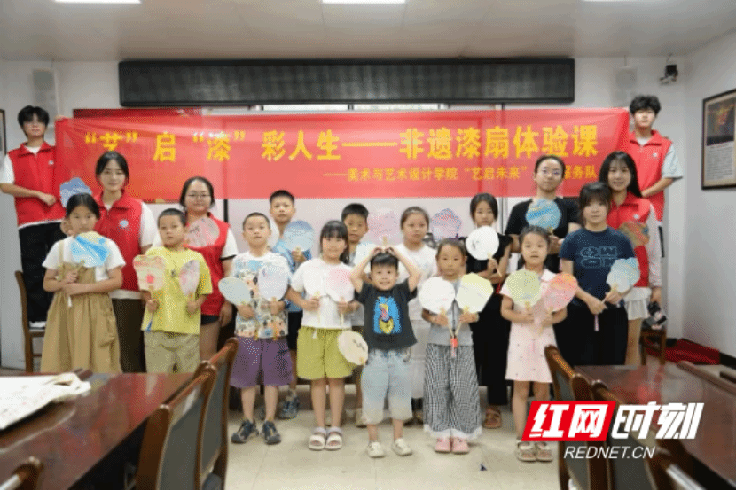 红网时刻新闻7月12日讯(通讯员 邓婉怡 向薛峰)近日,星空app官网美术与艺术设计学院“艺启未来”志愿服务队赴黄田铺镇开展“三下乡”非遗传承系列实践活动,以漆扇、扎染等非遗体验助力乡村文化建设。
