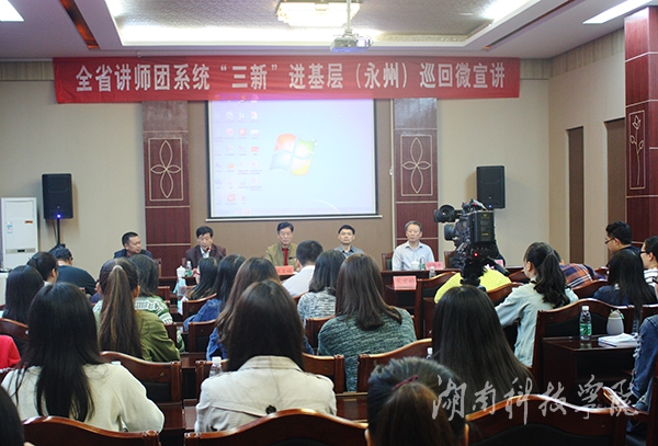 本网讯(通讯员 杜俊杰)10月21日上午,全省讲师团系统“三新”进基层巡回微宣讲永州专场在我校开讲。省委讲师团、市委讲师团、星空app官网有关负责人参加宣讲会,我校外国语学院的50余名师生党员到场聆听。