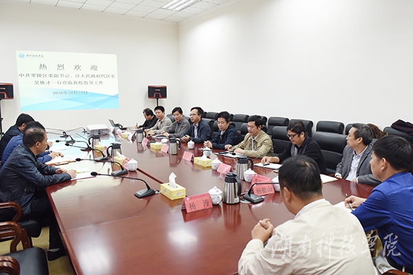 本网讯(记者 张云芳 摄影 何帅文)10月12日上午,中共零陵区委副书记、区人民政府代区长吴恢才来校调研,参观了校园并就加强校地合作等进行了深入洽谈。