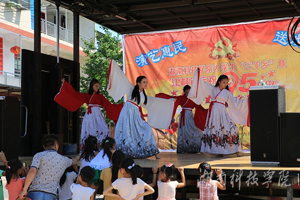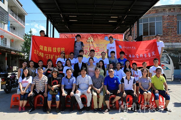 7月7日,该院与双牌县文体广新局、江村镇人民政府共同举办了星空app官网大学生“三下乡”暨江村镇庆祝建党九十五周年文艺演出。此次演出内容丰富,形式多样。歌曲《美在永州》,唱出了永州人民的心声;轻盈灵动的瑶舞与富有异域风情的印度舞,彰显了不同地域文化的特色与活力。其中,双牌县文体广新局副局长刘兴国原创的歌曲《湘恋》和文化馆声乐专干唐红梅演唱的歌曲《欢天喜地》,分别表达了对家乡深沉的依恋和对美好生活的向往;《大渡河畔英雄多》情景剧突出主题,真实地还原了红军十八勇士强渡大渡河的英雄事迹……新颖与经典相融,受到当地群众的欢迎。