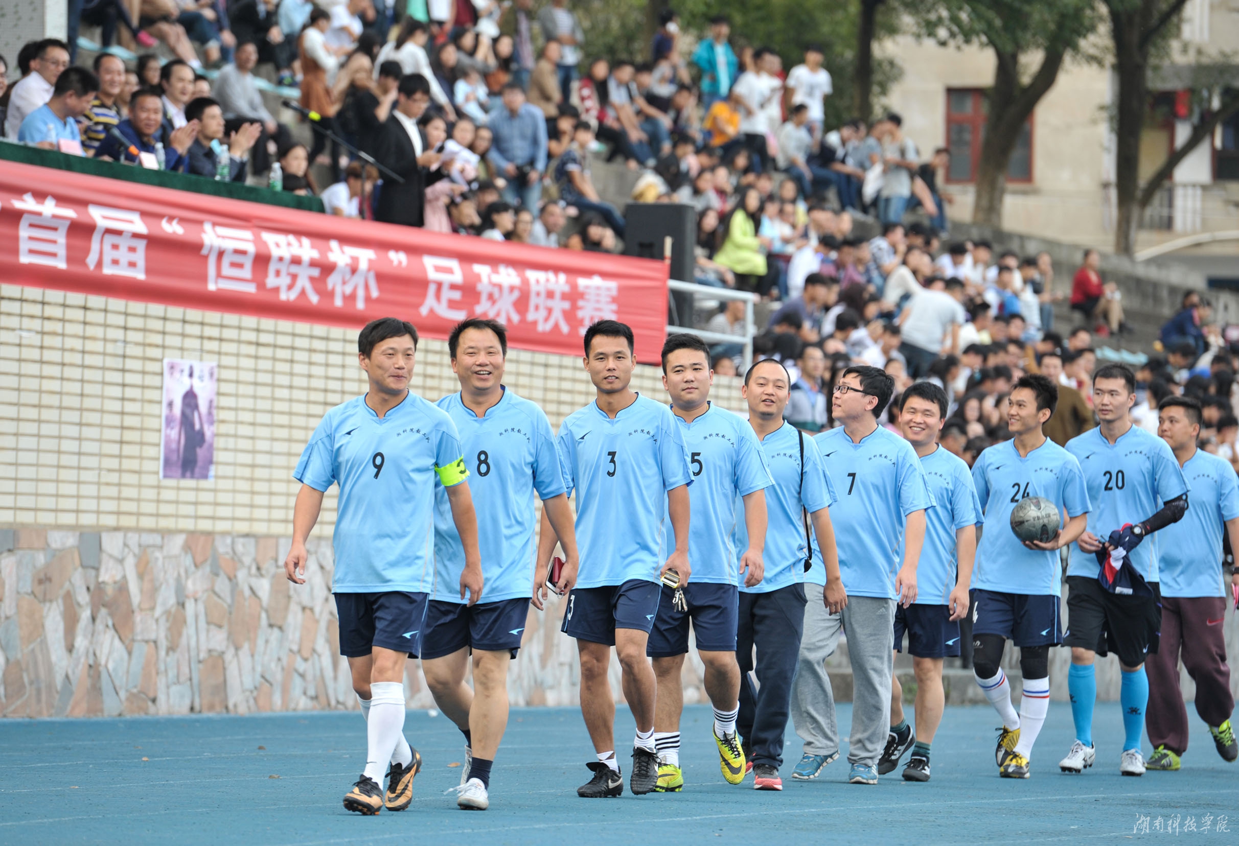 本网讯(记者 孙艳丽 实习记者 刘禹希)11月6日下午,在激昂的进行曲中,我校首届“恒联杯”足球联赛开幕。校党委书记、校足球运动领导小组组长陈弘出席并致辞,副校长、校足球运动领导小组副组长李常健、程智开及长沙恒联计算机有限公司董事长邓自义等领导嘉宾出席,并兴致勃勃地为首场比赛开球。开幕式由程智开主持。