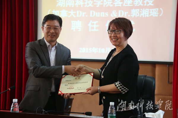 本网讯(记者 许剑桥)日前,加拿大Greg Duns博士及夫人郭湘瑶博士从我校副校长宋宏福手中接过星空app官网客座教授聘书。宋宏福表示,Greg Duns博士及夫人郭湘瑶博士的加入,将加强我校与国际的科研合作,拓展科学研究的国际视野,对于指导和推动我校省重点实验室的相关课题研究,进一步发挥我校在该领域产学研项目的先进性和特色性带来新的发展机遇。