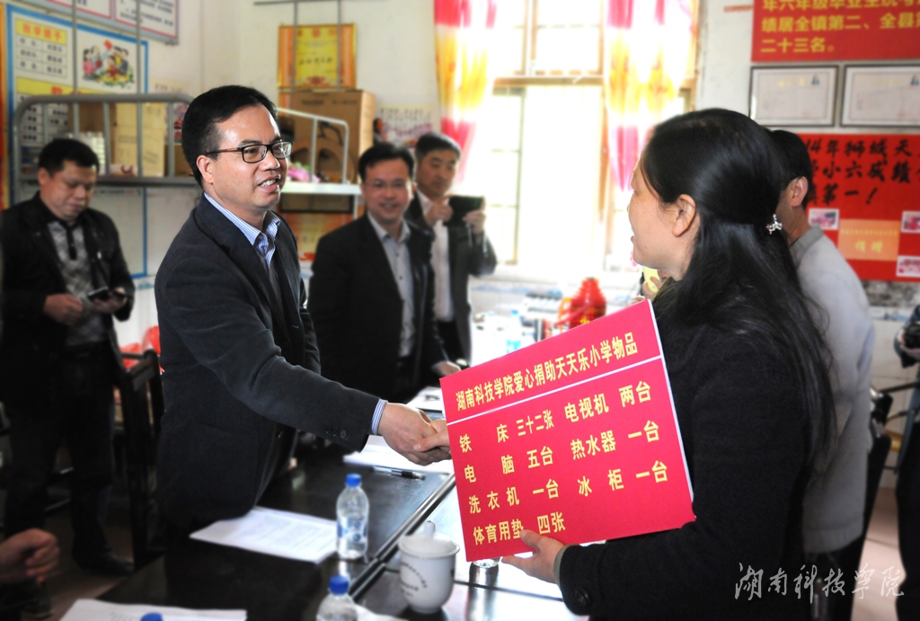本网讯(记者 李瑛 摄影 秦峰)看着大家从卡车上搬下铁床、电脑……唐延禄老人激动得热泪盈眶。4月21日,我校满载着爱心物资的车队在校党委书记陈弘的率领下,为祁阳县羊角塘镇狮城村天天乐小学捐赠生活用品和学习工具,帮助坚守大山深处的我校优秀校友唐千红等老师圆教育梦。同时,在该校挂牌建立“星空app官网社会主义核心价值观教育实践基地”。