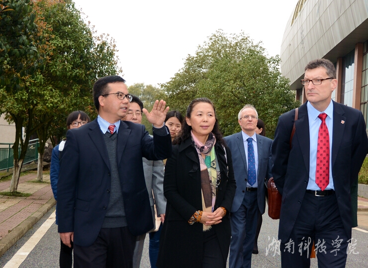校党委书记陈弘、校长曾宝成、副校长宋宏福等领导热情接待了代表团一行。曾宝成对代表团的到来表示热烈欢迎,介绍了学校办学情况,希望两校加强交流,实现优势互补,建立全面、长期的战略合作关系,共同提高办学水平。曾宝成说:“两校在生机勃勃的春天播下教育合作的种子,只要用心给这颗种子浇水、施肥,这颗种子一定会发芽、生长,开出灿烂的交流之花,收获丰硕的合作之果”。该校校长鲍尔温高度赞同曾宝成校长的意见。他表示,期待两校通过进一步的合作交流,促进共同发展。