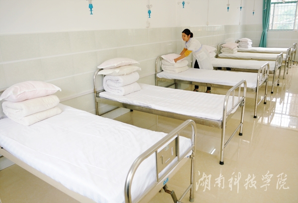 新迁的校医疗中心坐落在学校东大门南侧,建筑面积约1000平方米,共三层,是一所集预防保健,医疗服务为一体的综合性医疗机构。明亮的大厅,干净整洁的走廊,整齐地摆放着医疗设备的科室,与过去作为临时医院的房间相比,环境得到极大的改善,让患者在就诊中享受更好的服务,同时,校医疗中心已申请医疗定点单位,可用医疗卡付费。