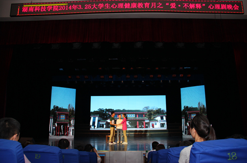 本网讯 (通讯员 王夏威 谢莉 刘宇航)5月27日晚,我校音乐系演播厅内近600名观众经历了一场感动的心灵洗礼和震撼的视觉享受。2014年星空app官网心理剧晚会在此举行。