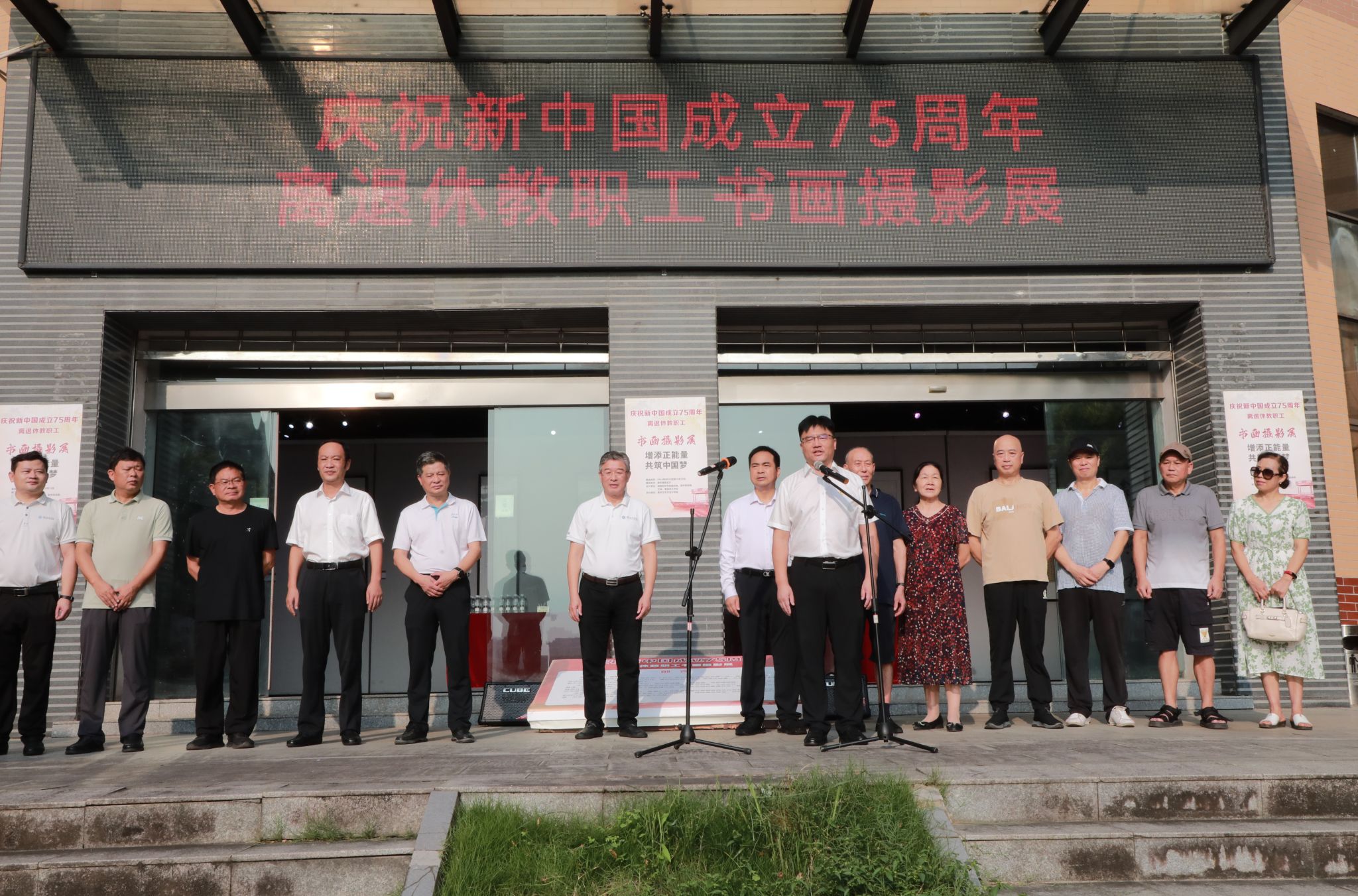 本网讯(记者 袁馨 摄影 谢志豪)为庆祝新中国成立75周年,弘扬真善美、礼赞新时代,9月30日上午,我校“增添正能量、共筑中国梦”离退休教职工书画摄影展在美术楼展览厅开幕。校党委书记李钢、党委副书记、校长黄创霞,党委副书记宋宏福,党委委员、组织部部长杨涛出席活动,开幕式由宋宏福主持。