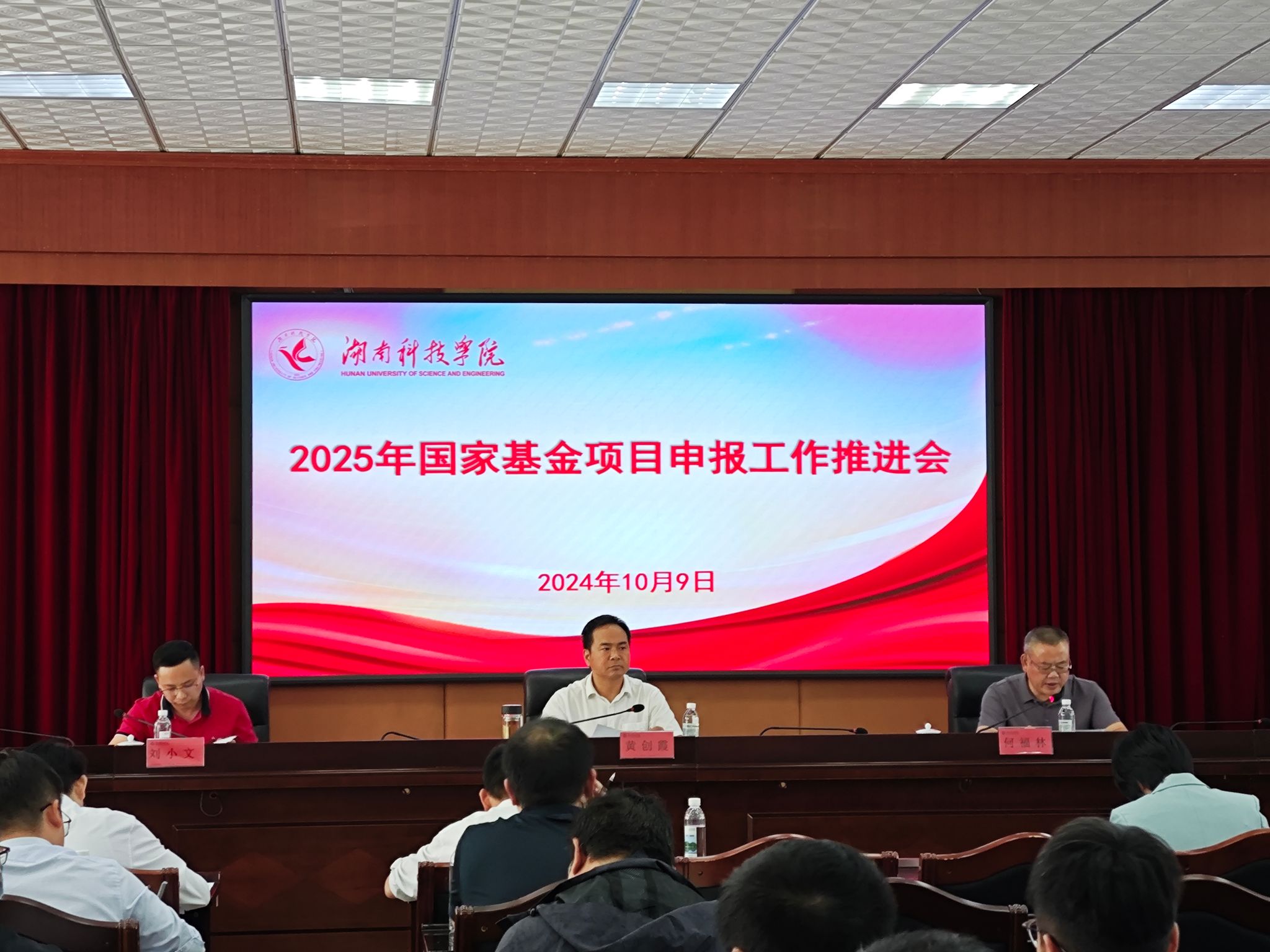 本网讯(通讯员 龙海峰)为进一步加强有组织科研,统筹推进2025年国家基金项目申报工作,10月9日,学校组织召开2025年国家基金项目申报工作推进会,党委副书记、校长黄创霞出席并讲话,党委委员、副校长何福林主持会议。各教学学院院长、分管科研工作副院长,学校科研骨干以及科技处全体人员参加会议。