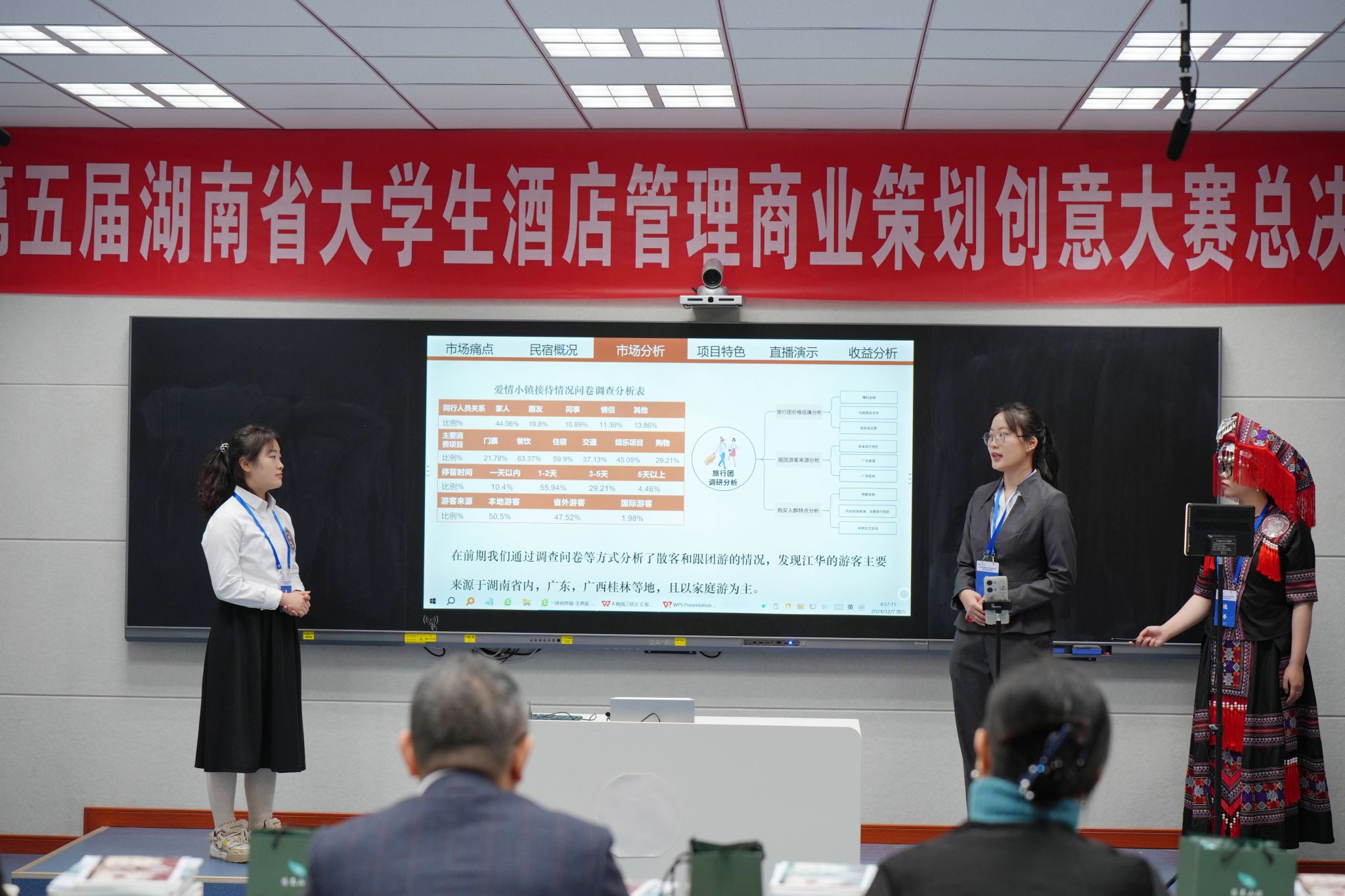 本网讯(通讯员 刘鑫湘 郭扬 逄宇鸣 向玉珍 摄影 张倍嘉 朱浩然)12月7日下午,由湖南省教育厅主办,我校承办,江华瑶族自治县水口镇人民政府、江华爱情小镇旅游开发有限责任公司、湖南师范大学酒店管理创新创业教育基地协办的第五届湖南省大学生酒店管理商业策划创意大赛总决赛在我校圆满落幕。
