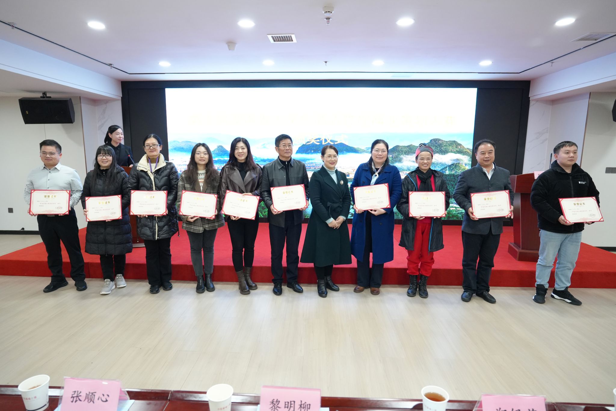 大赛颁奖仪式在江华瑶族自治县水口镇举行,副校长郑银芳教授带领决赛部分获奖团队、大赛组委会代表、学校相关部门工作人员参加活动,并就高校如何进一步为地方文旅产业发展赋能探索新思路。现场还颁发了“爱情小镇景区推荐官”和“水口镇荣誉居民”证书。江华瑶族自治县人大常委会副主任黎明柳参加活动,副县长熊丽丽主持颁奖仪式。