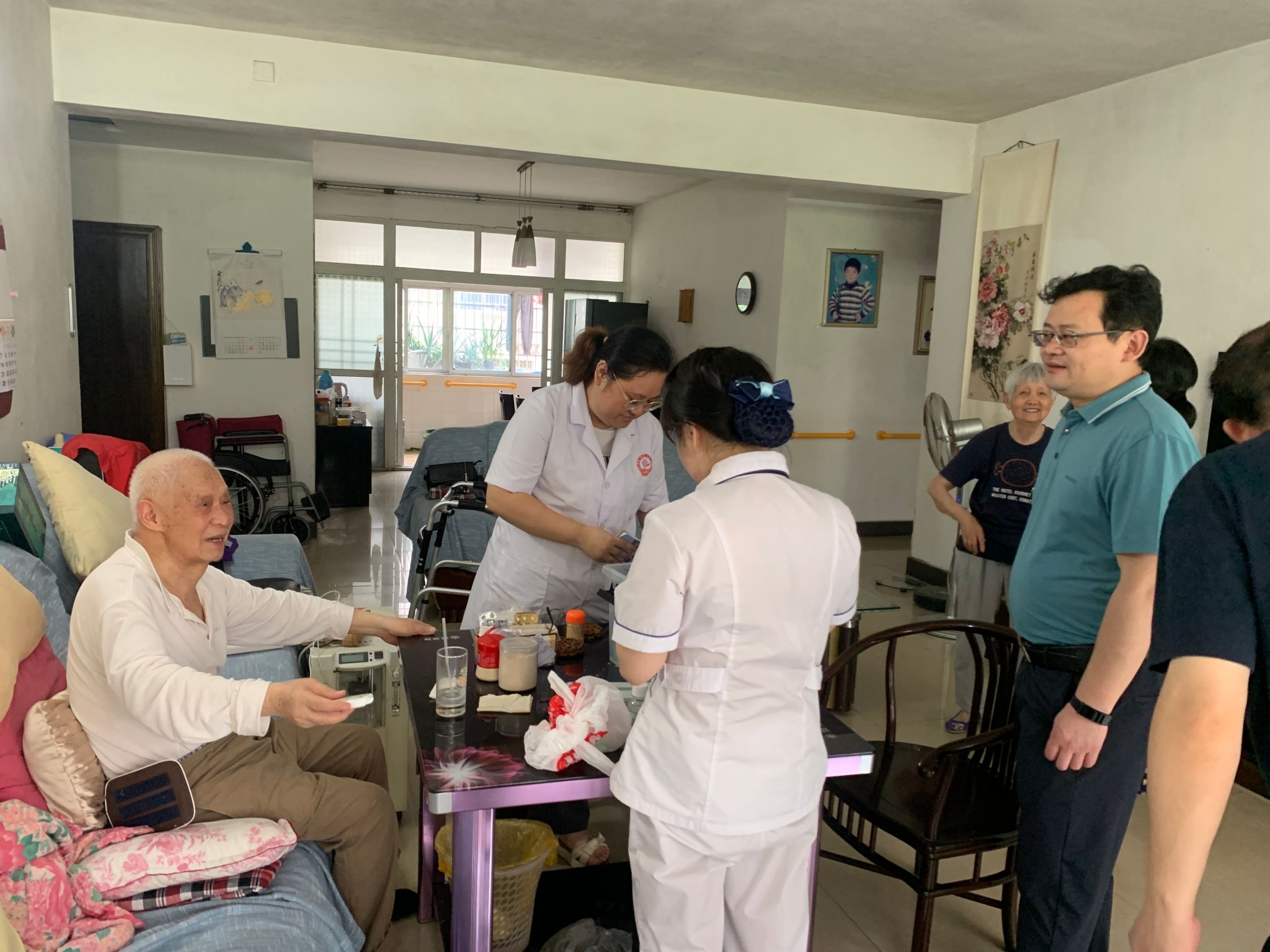义诊医生们耐心细致地帮90余位离退休职工进行各项免费检查,在详细询问病史后,将相关信息登记入册,针对性给予诊疗指导。对于患病情况复杂的4位老人,学校还联合义诊医生们开展“上门问诊”服务,为其制定更精准的治疗方案。
