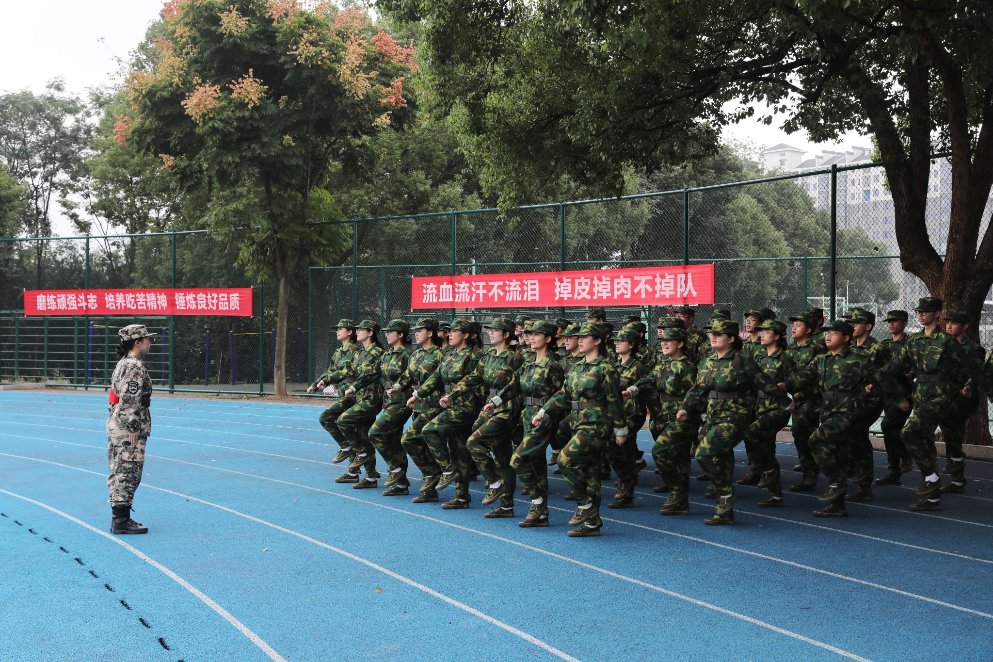 校领导一行不时驻足观摩各连队的训练风采,看望慰问教官和参训师生,并与他们亲切交谈,对教官们的辛勤付出表示衷心的感谢,希望全体教官要严密组织、科学施训,圆满完成军训各项任务。