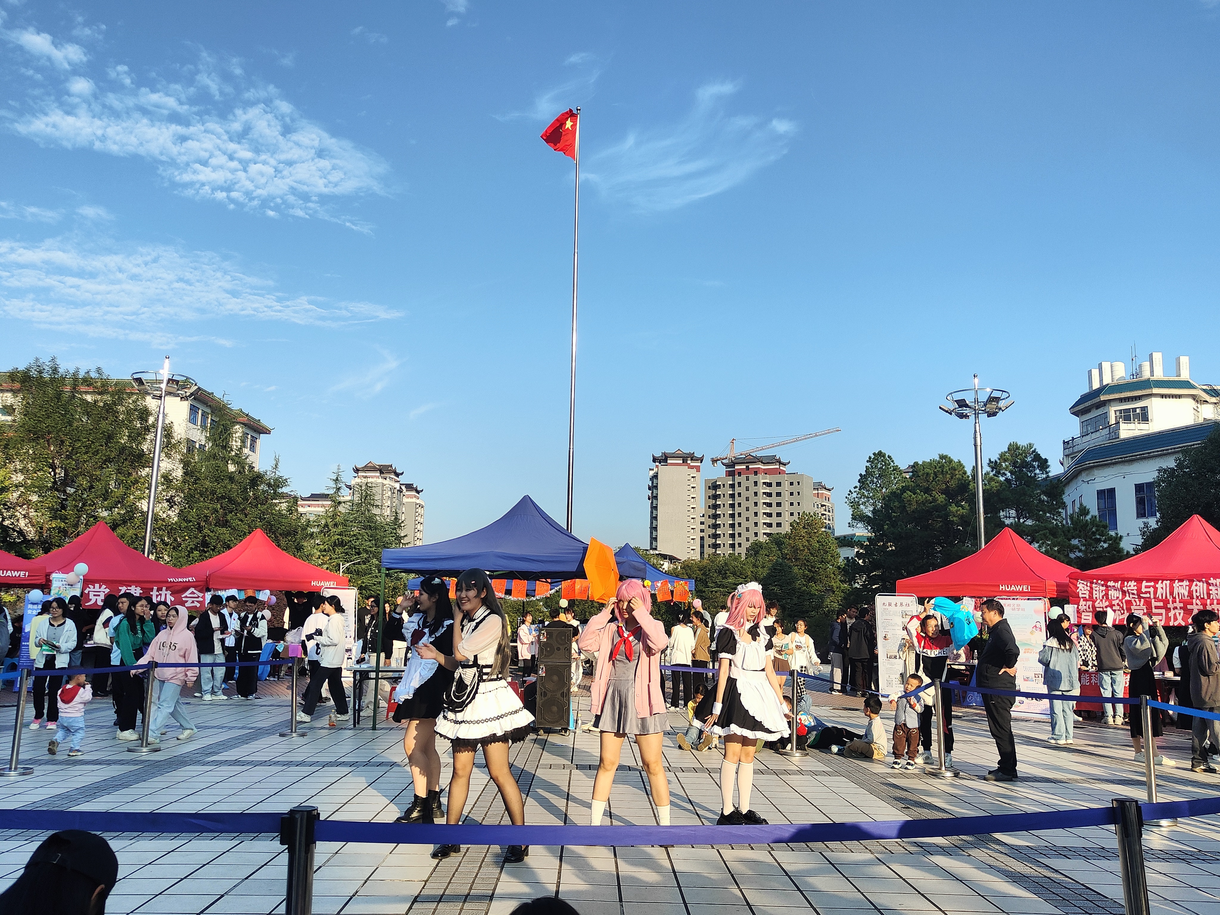 飞翔轮滑协会在会场中间表演起花式轮滑,各种高难度的动作令人称奇;ACG动漫协会的成员们精美的cosplay服装引人围观拍照;散打上演了一场肌肉与力量的视觉盛宴;交谊舞协会律动青春,歌声美妙;更有中国画协会协会展出的精美字画作品……多场表演让人应接不暇,流连忘返。