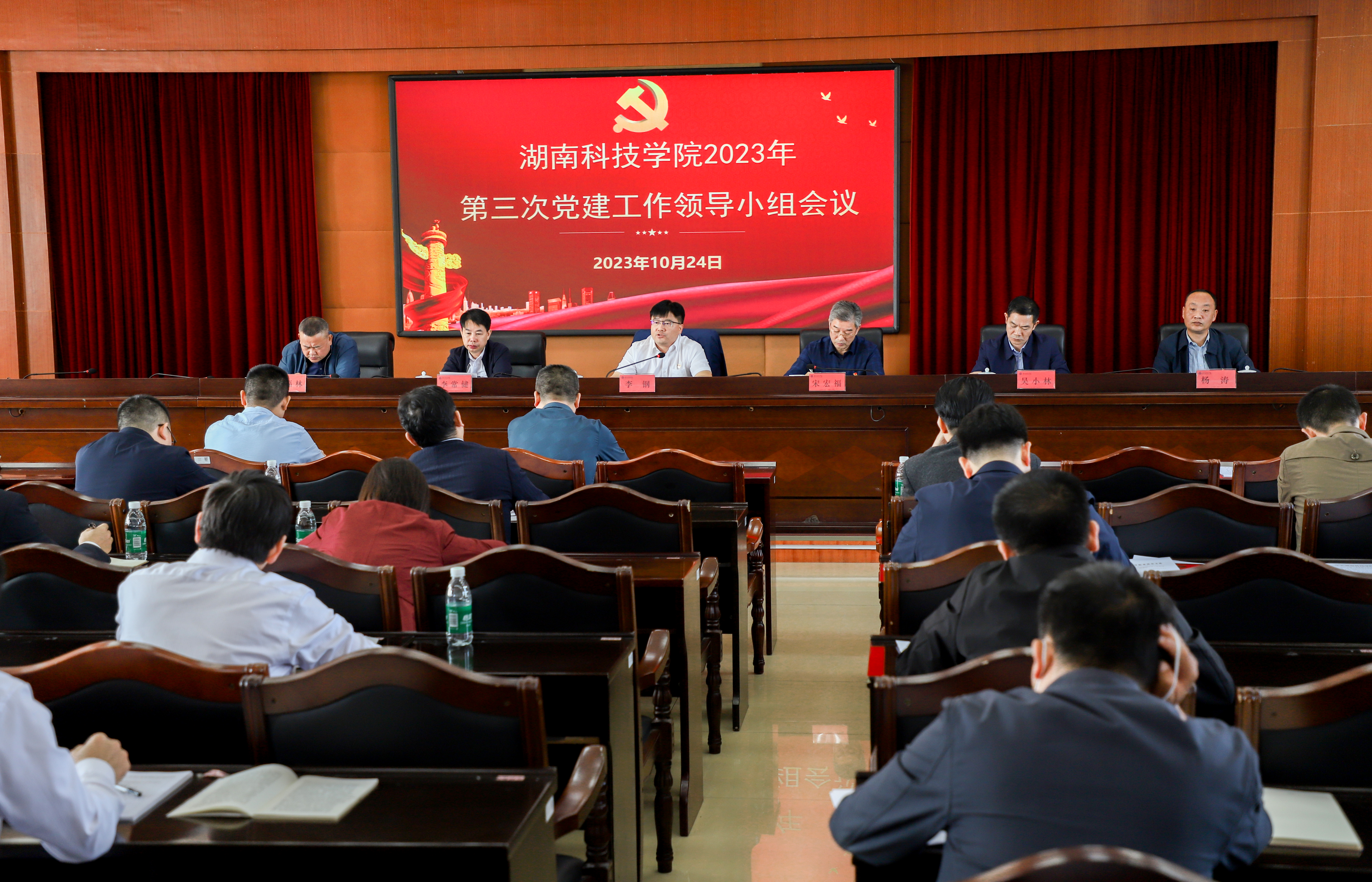 本网讯 10月24日,学校召开党建工作领导小组2023年第三次会议。党委书记李钢,党委副书记宋宏福,党委委员、副校长李常健、吴小林、何福林,党委委员、组织部长杨涛出席会议。
