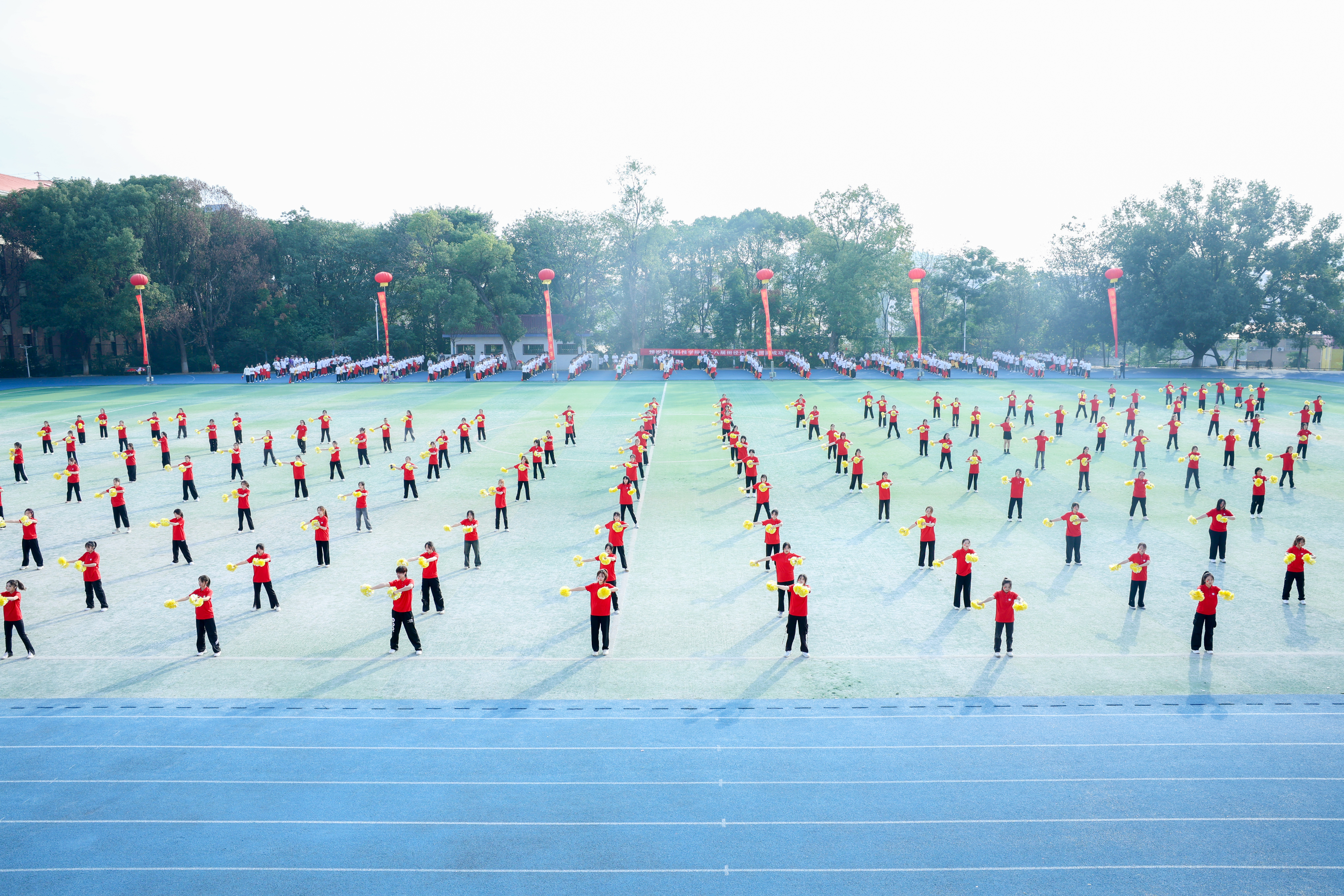 五颜六色的气球放飞天空,全场掌声雷动。在观众热情的欢呼声中,美术与艺术设计学院学生带来了啦啦操表演《美丽中国》,体育学院学生展示了行云流水的舞刀表演和摆字方阵表演,精彩纷呈,创意十足,演绎了健康向上的体育精神。