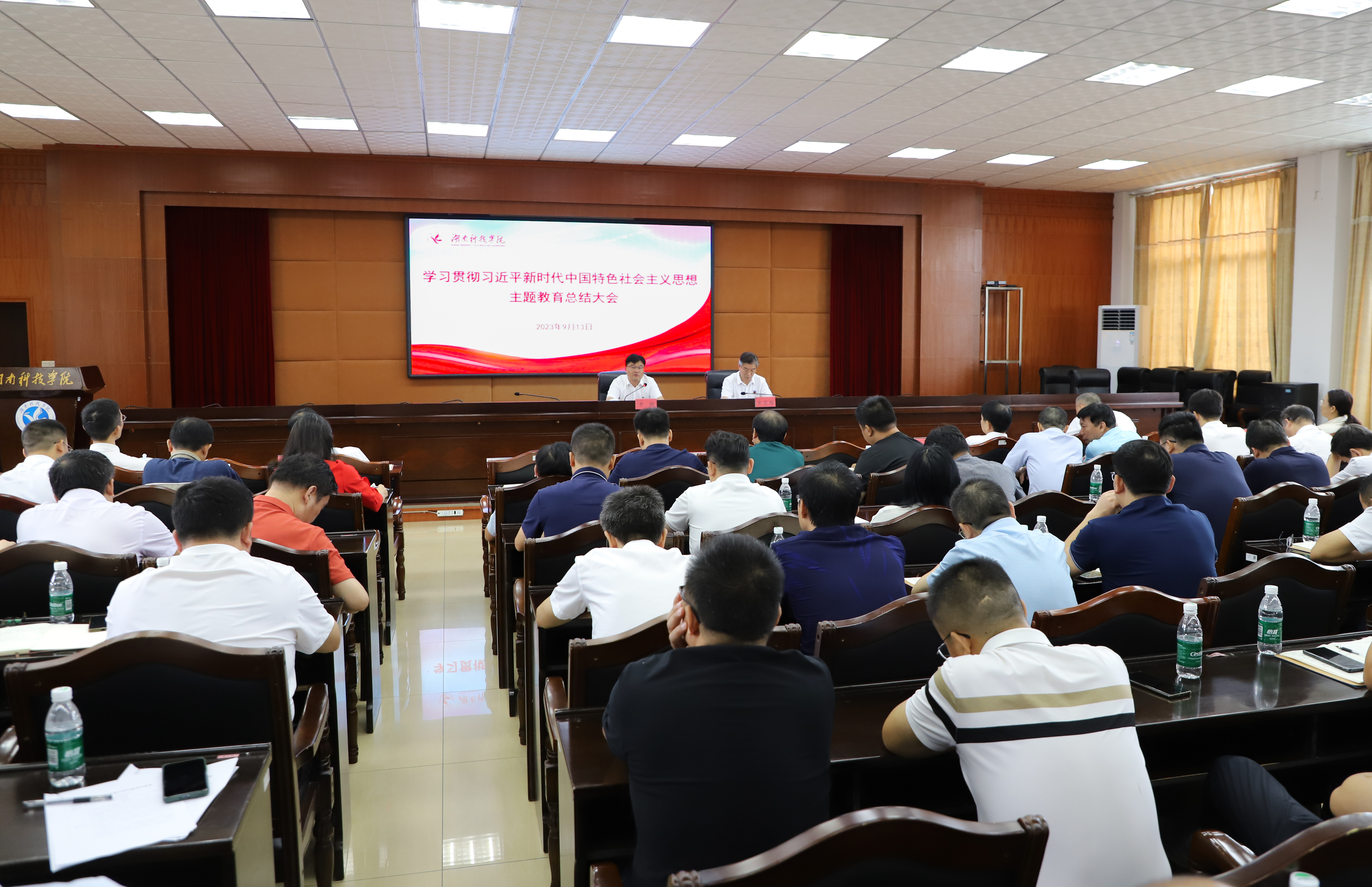 本网讯 9月13日上午,学校在行政楼八楼一会议室召开学习贯彻习近平新时代中国特色社会主义思想主题教育总结大会。会议深入学习贯彻中央和省委主题教育第一批总结暨第二批部署会议精神,全面总结学校主题教育开展情况,对巩固拓展学校主题教育成果进行部署。党委书记李钢作总结讲话,全体党委委员、校领导出席会议。党委副书记宋宏福主持会议。