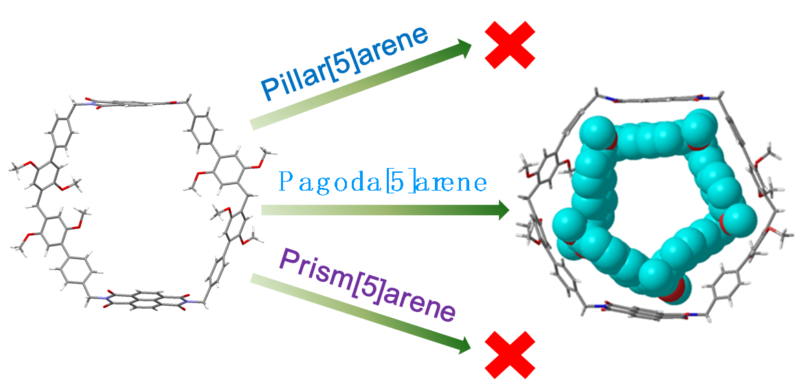 任何一种新型的大环主体分子的出现,都能显著满足主客化学的研究需求,并进一步丰富超分子化学领域。大空腔尺寸的大环芳烃,由于其空腔大,可以包裹生物大分子如多肽和多糖,近年来是超分子化学的一个研究热点。然而,大空腔尺寸的大环芳烃由于其产量低,分离程序复杂,同时由于柔性亚甲基桥接头众多,难以保持骨架刚性,在合成上是一个巨大的挑战。在研究团队负责人覃佐东教授的带领下,团队成员围绕酰亚胺功能大环的设计合成及其在分子识别等方面开展了系统研究,成果相继在中科院一区期刊Org. Chem. Front., 2022, 9, 4829-4833及中科院二区期刊 J. Org. Chem., 2022, 87, 3863-3867上进行了发表。