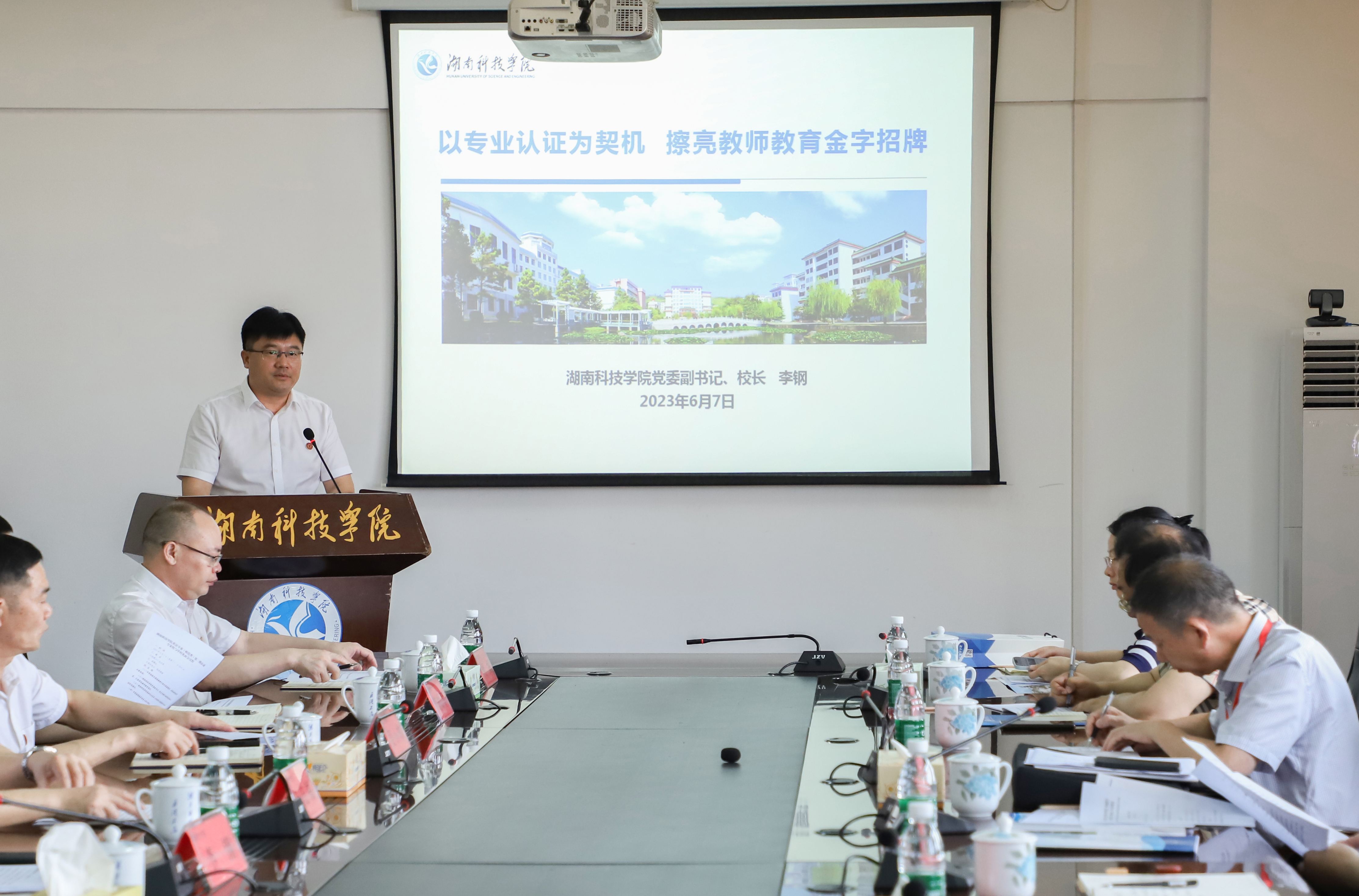 党委副书记、校长李钢代表学校向各位专家表示热烈欢迎和衷心感谢,他表示,师范类专业认证专家组莅临学校传经送宝,是对学校更好推进师范类专业建设的会诊把脉,是帮助学校深化教育教学改革、全面提升办学水平的重要契机。希望专家对我校英语专业师范类专业认证工作,教育教学整体工作进行全方位审视、多视角考察,直言不讳地指出问题差距。学校将倍加珍惜此次专家上门送教、现场施教的机会,认真听取专家们的宝贵意见建议,全面总结反思和改革师范专业建设,更进一步提升教师教育水平和人才培养质量。