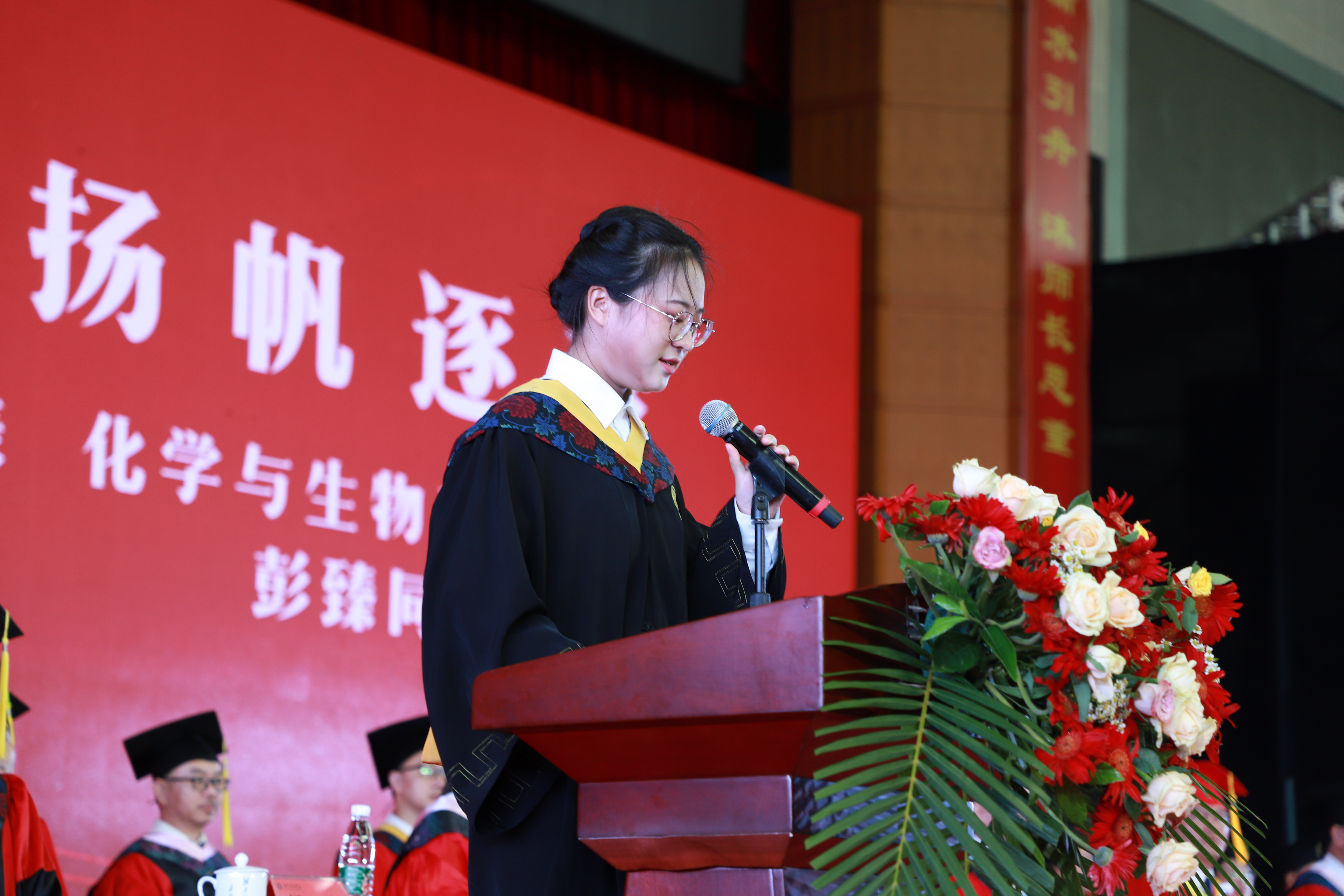 “科院给予我们的财富不仅仅是书本上的专业知识,更是对真善美的执着信仰和由衷热爱。”2023届毕业生、制药1902班彭臻同学代表全体毕业生向学校、老师、家人和朋友表达了最衷心的感谢。她分享了自己在大学四年的美好青春时光和成长收获,呼吁同学们担当起新时代青年的社会责任,在实践中实现自我价值,无畏风雨,扬帆逐梦。