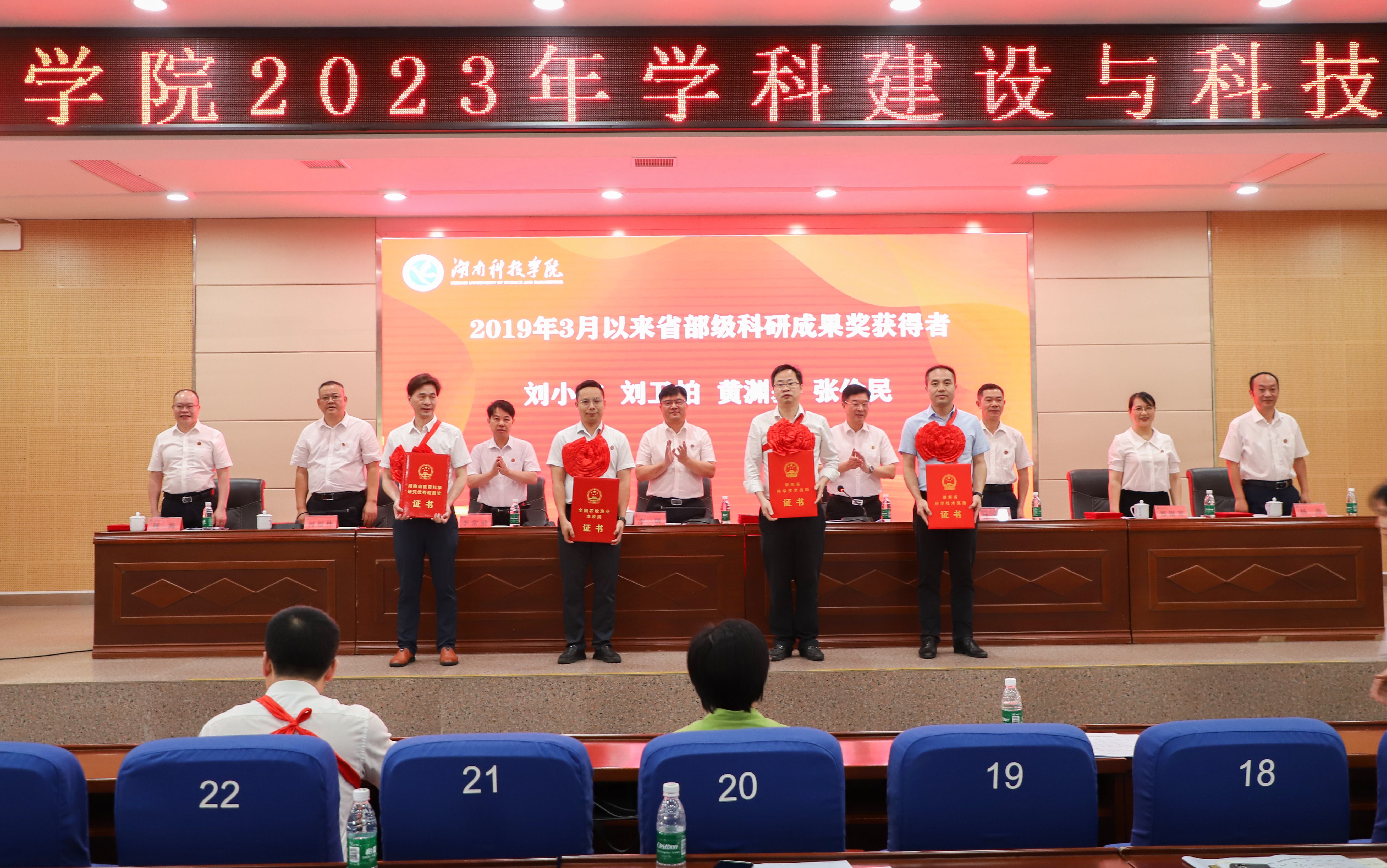 校领导、党委委员分别为“十四五”省级应用特色学科和校级重点(含培育)学科带头人、学科创新团队(含培育)负责人授牌,并为获得表彰的个人颁奖。