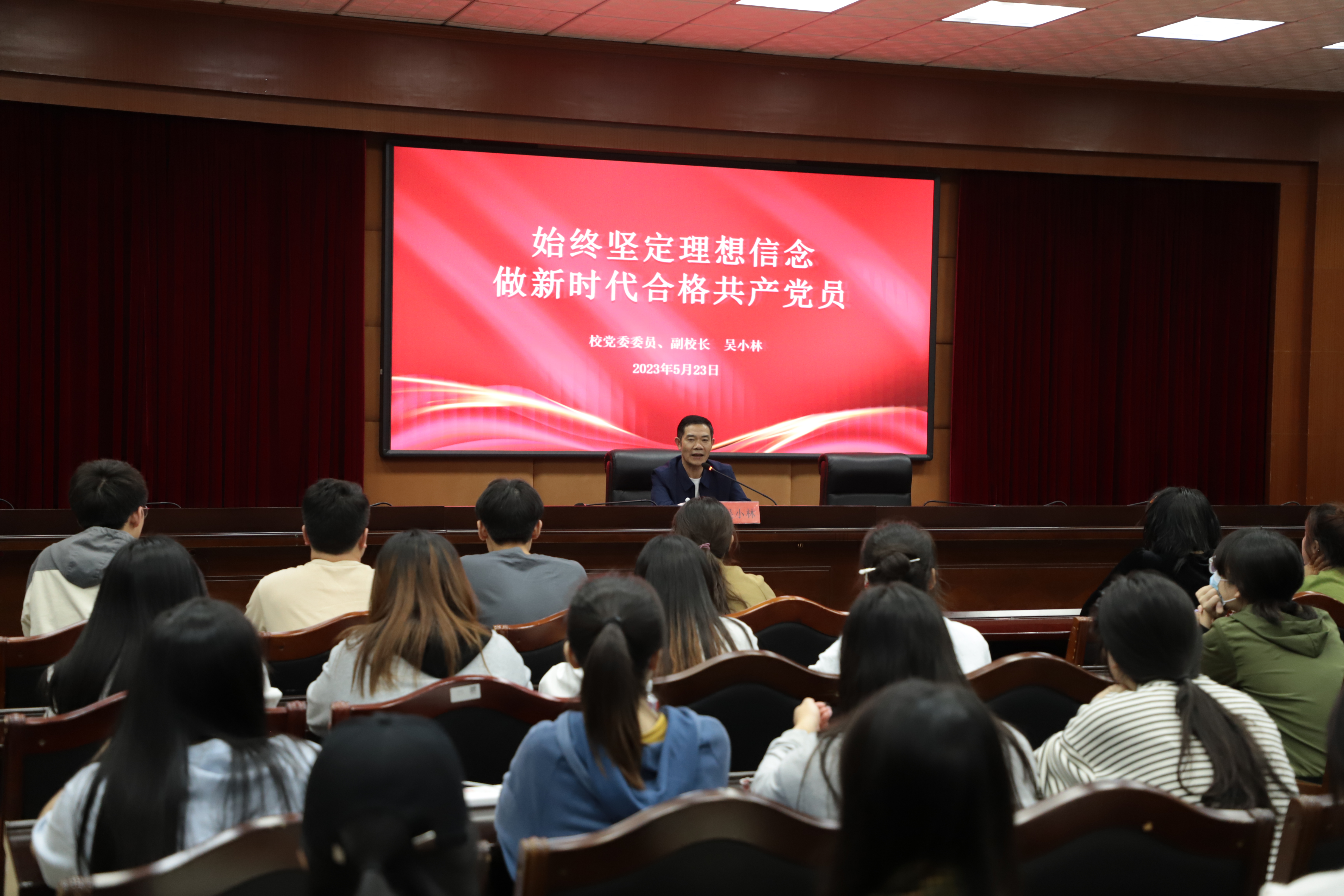 吴小林以《始终坚定理想信念,做新时代合格共产党员》为题,从理想信念是什么、理想信念内涵以及怎样坚定理想信念等三个方面深入浅出的阐述了理想信念的重要性,他对毕业生党员提出九点要求:一是要坚持对党的绝对忠诚;二是严守政治纪律和政治规矩;三是强化党的理论武装;四是要坚持党牢牢把握意识形态的领导权和主动权;五是要坚持真抓实干,发扬实事求是的作风;六是要勇于改革创新,坚决消除安于现状的思想;七是发扬斗争精神,迎难而上、敢想敢做;八是营造团结干事氛围,践行人民至上理念;九是永葆政治清正廉洁本色,树新风、扬正气。