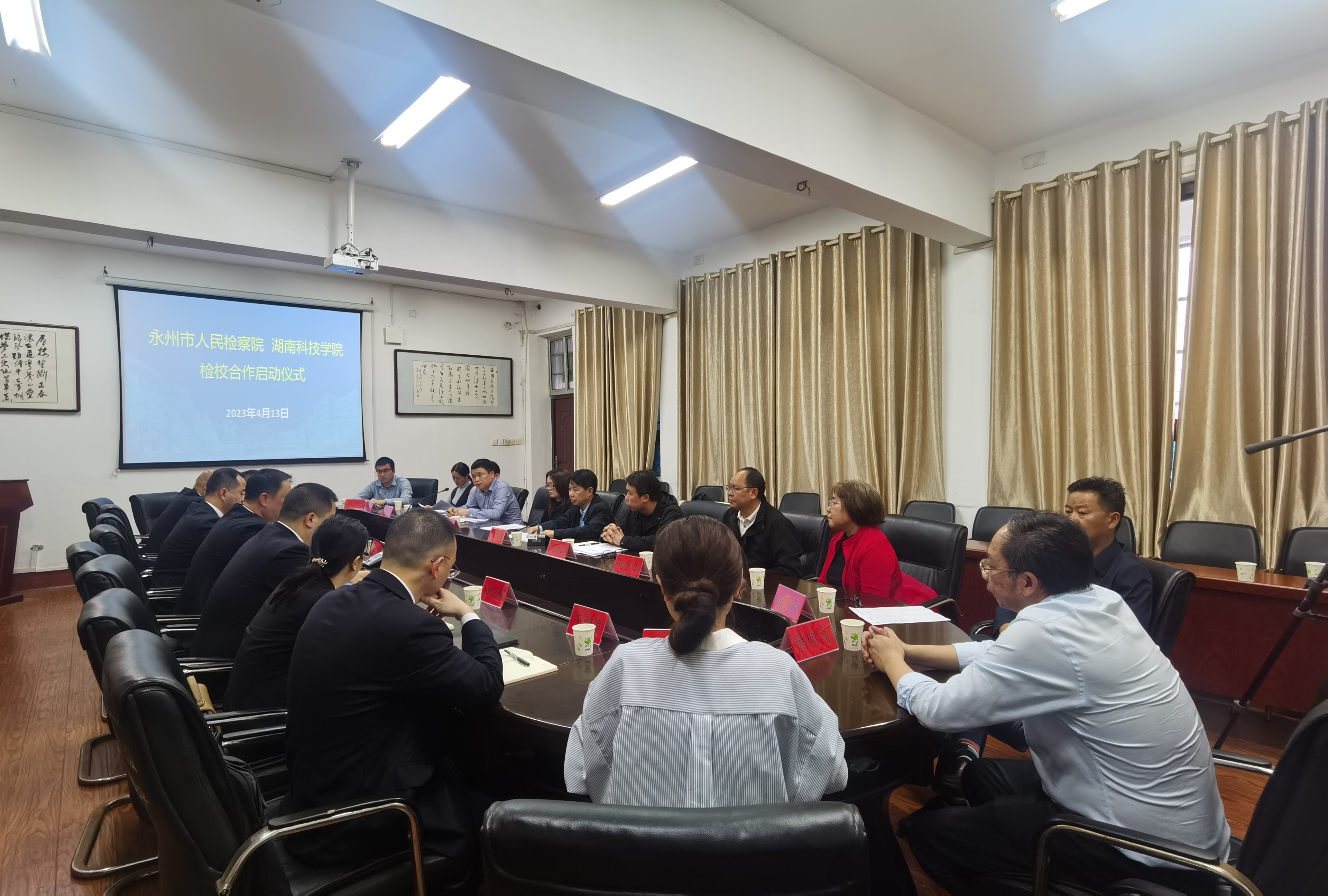 双方代表签署了《检校合作协议》,并分别为法学专业实习实践基地、永州市人民检察院检察理论研究基地授牌。