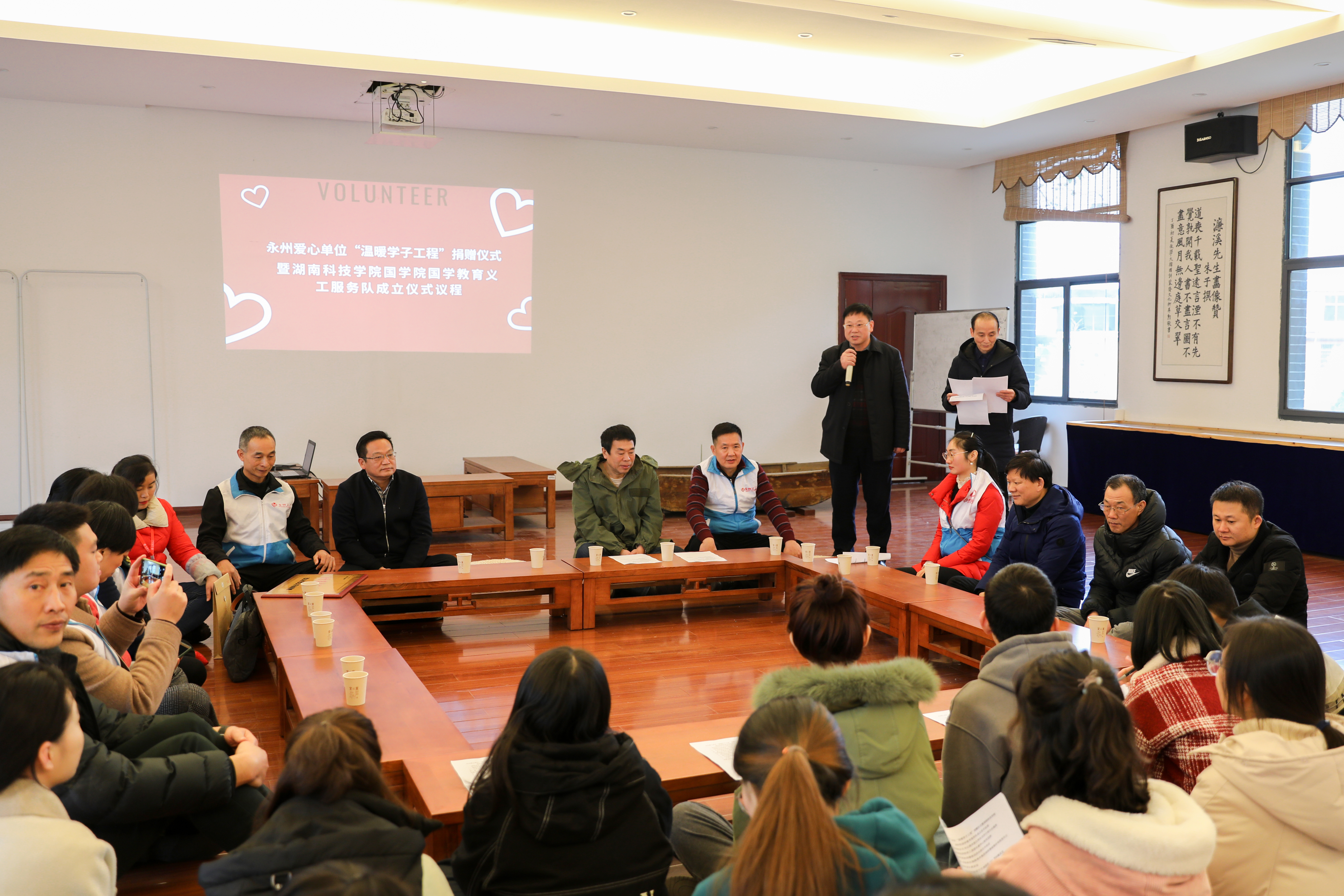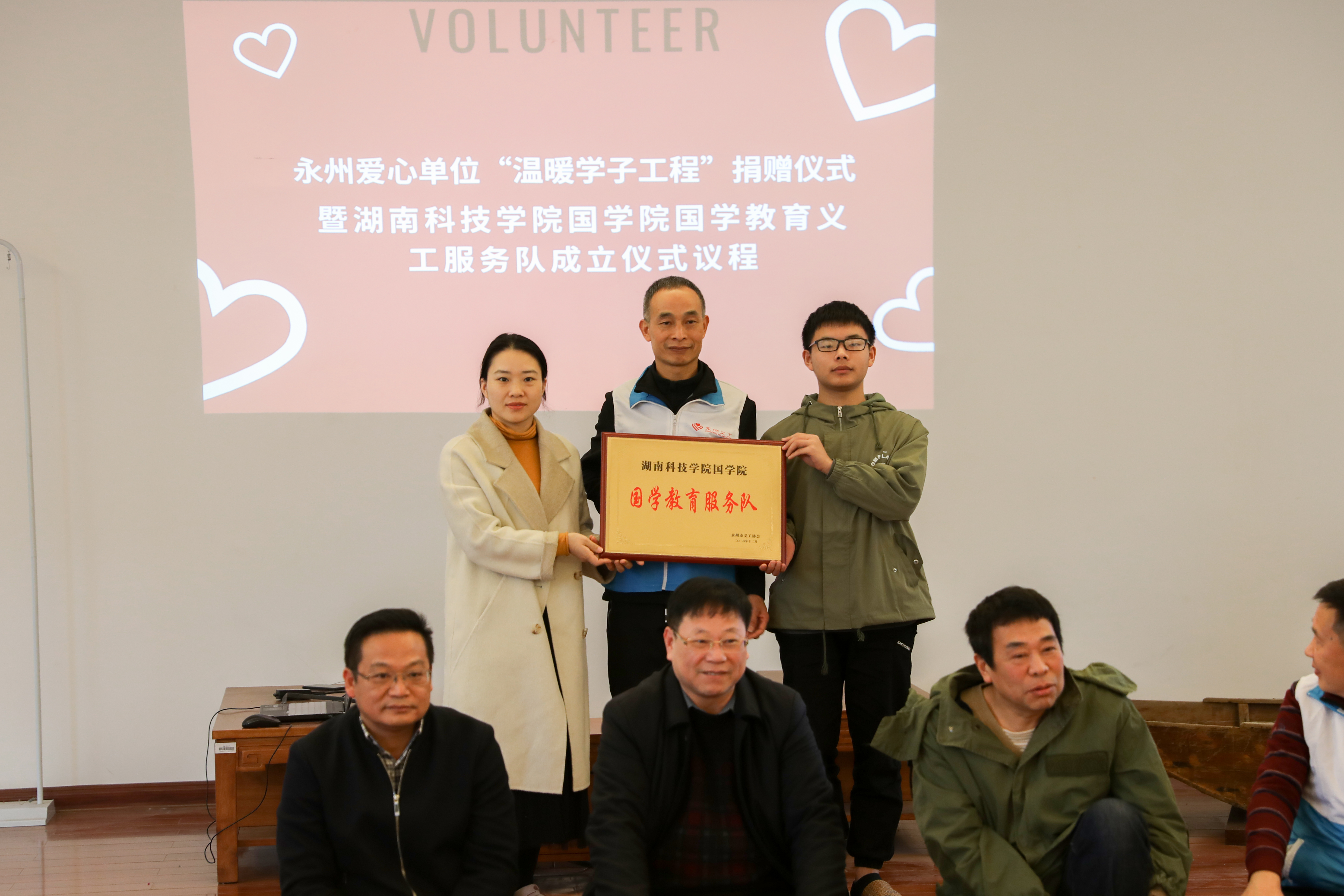 本网讯 12月10日下午,永州爱心单位“温暖学子工程”捐赠仪式暨国学院国学教育服务队成立仪式在校举行,我校15名贫困学子每人获得2200元的爱心助学金。