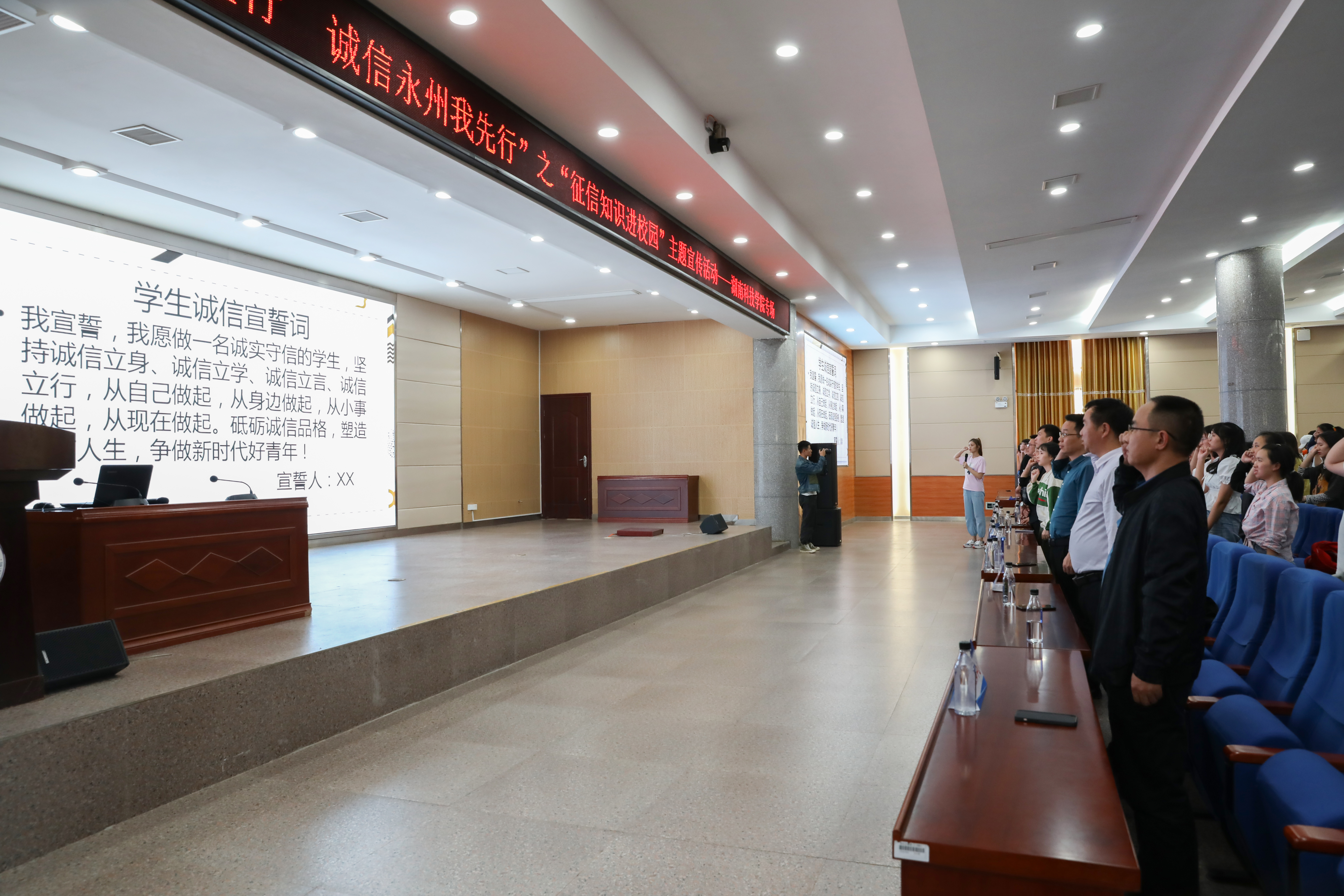 本网讯(实习记者 黄彩燕 周芳梅 周欣怡)为全面推进永州市全国社会信用体系建设示范城市创建工作,11月18日,由中共永州市委宣传部、中国人民银行永州市中心支行、永州市行政审批服务局主办,学校与中国银行永州分行联合承办的“诚信建设万里行,诚信永州我先行”之“征信知识校园行”主题宣讲活动星空app官网专场在潇湘大讲堂举行,学校600余名学生到场聆听。