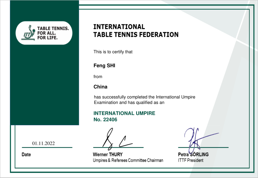 近日,体育学院教师石峰收到国际乒联颁发的乒乓球国际级裁判证书,这是我校第一个体育项目的国际级裁判员,也是永州第一位乒乓球国际裁判。