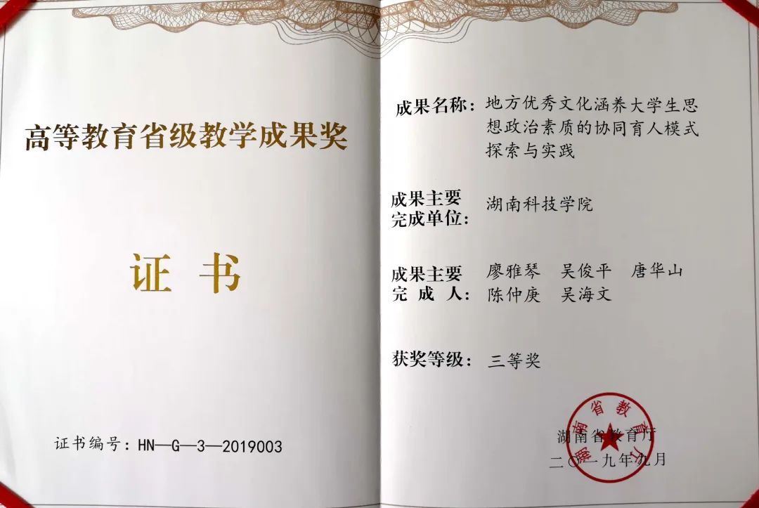 • 湖南省第五届大学生思课研究性学习成果展示竞赛优秀组织奖1项
