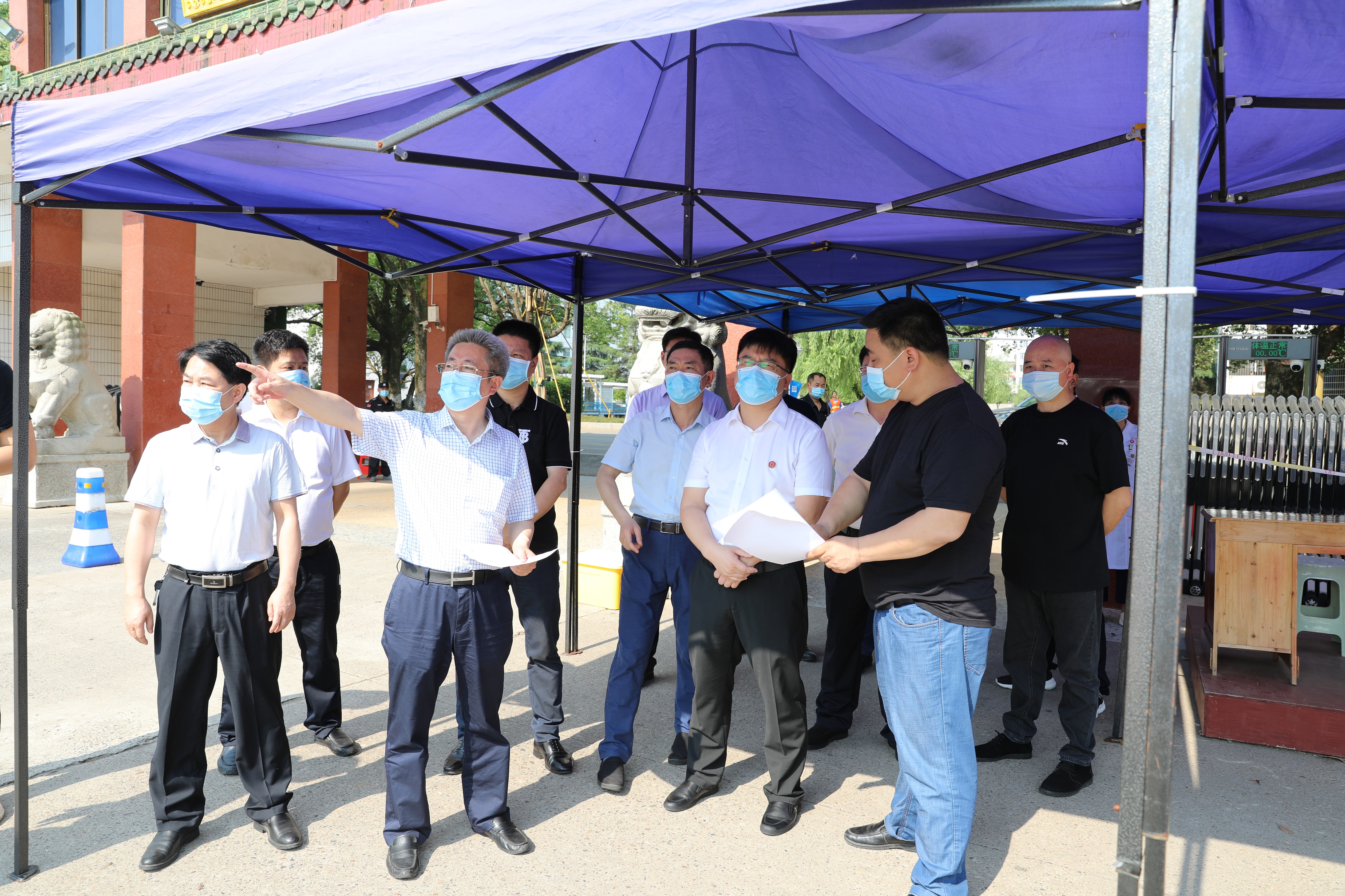 在东大门,曾宝成、李钢一行从等候区到测温区情景模拟了学生入校流程,详细询问了学生入校管控和校园管理应急举措,对各项防控措施准备工作给予了充分肯定。他们还走进校医院,叮嘱要慎终如始全方位做好准备工作,要始终将学生的健康安全摆在第一位。看到松园食堂醒目易懂的取餐流程图标,工作人员正在对公共区域进行消毒,他们要求要根据学生需求优化服务举措,让学生感到更贴心、更安心、更放心。在教学楼,他们深入了解了教学环境消毒准备工作和线上教学工作进展,对恢复正常的教育教学秩序充满信心。得知各教学学院辅导员与宿管阿姨正在为学生晒被子、打扫卫生,曾宝成、李钢勉励大家要全面细致为学生服务,做到防控措施有细节、制度落地有温度,确保将又严又暖的防控安全网织细织密。