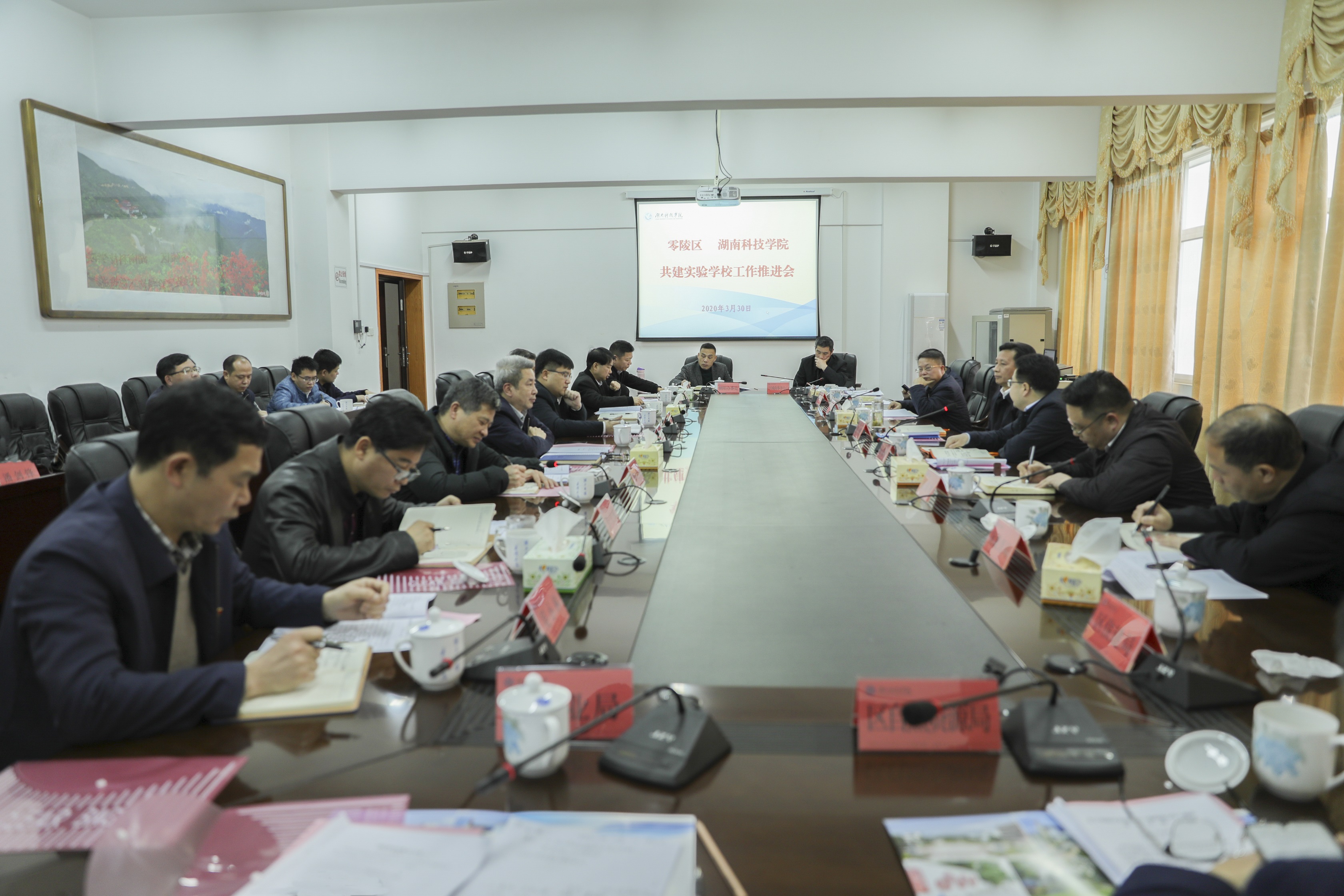 零陵区区委办、区教育局、区财政局、区住建局、区城南事务中心、区自然资源局、区林业局及朝阳办事处负责人与会。学校党政办公室、基建处、发展规划与学科建设处、工会、资产管理处、东大门广场建设指挥部等相关部门负责人参会。