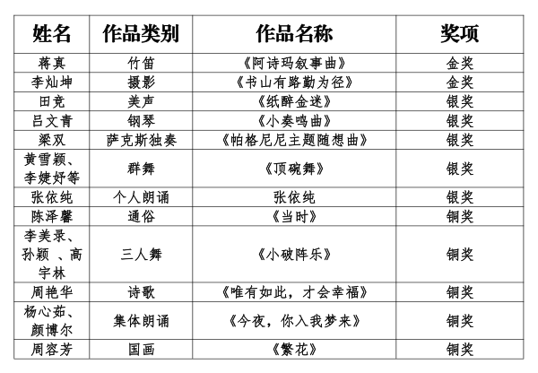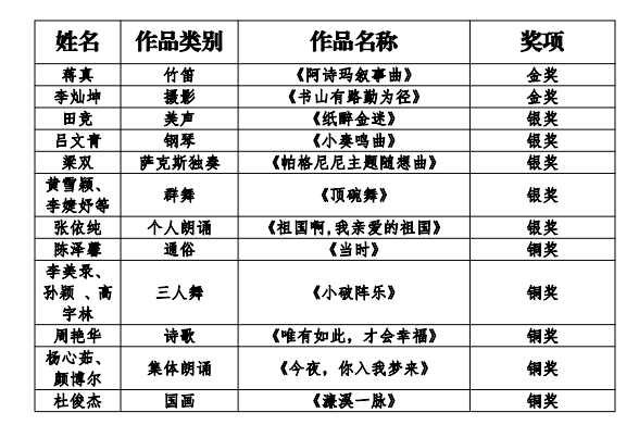 附:《湖南省第五届青年文化艺术节我师生校获奖名单