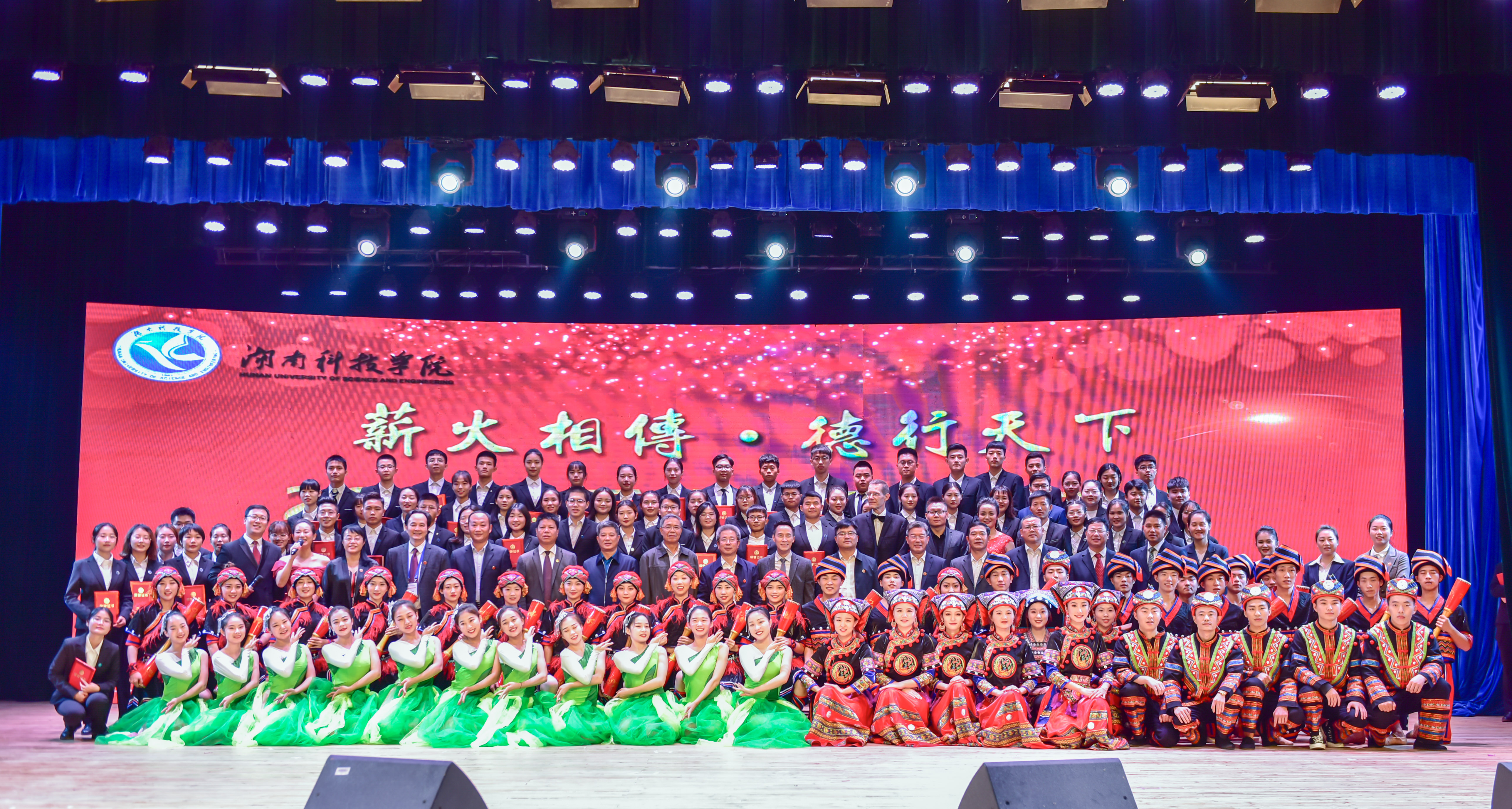 本网讯 七十八年春风化雨,七十八年立德树人。11月12日晚,正值学校建校78周年纪念日,学校举行“薪火相传·德行天下-星空app官网2019年舜德学子颁奖典礼”,100名优秀学子获表彰。本科教学工作审核评估专家广西师范大学原副校长钟瑞添、武汉音乐学院学科建设与规划办公室主任陈明,党委书记曾宝成,校长李钢,校领导唐艳明、宋宏福、彭立威、吴小林、程智开,党委委员、组织部长何福林,党委委员、宣传统战部长杨涛等参加颁奖典礼,并与学校师生共同观看表彰晚会。