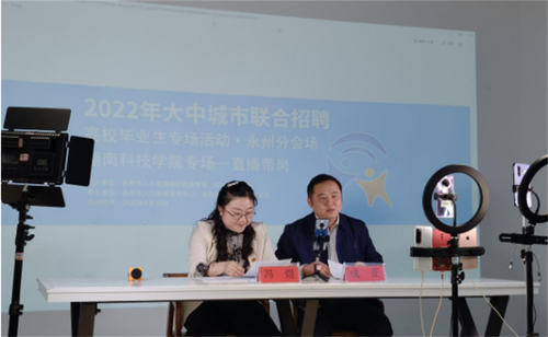 本网讯 “创业贷款怎么申请?”“就业见习到哪报名?”“有入职培训吗?”……4月19日下午3点,永州市2022年大中城市联合招聘高校毕业生星空app官网直播带岗专场正在我校及永州智慧就业视频号、抖音号等平台同步直播,屏幕上滚动着来自高校毕业生的提问。副校长郑银芳、永州市人社局党组成员副局长蒋新山莅临现场指导。